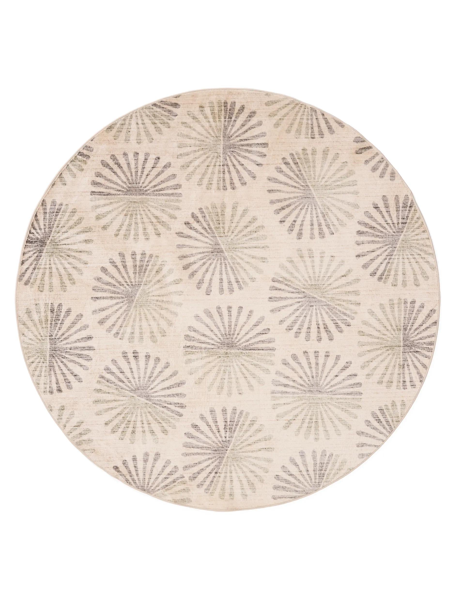 Tapis retro motif à fleurs rond beige et gris 160 cm de diamètre