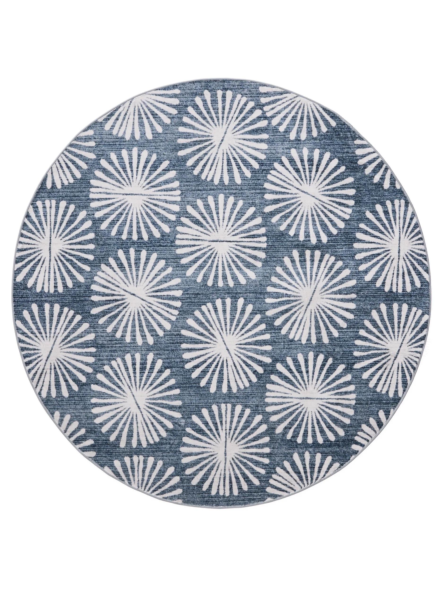 Tapis retro motif à fleurs rond bleu et blanc 160 cm de diamètre