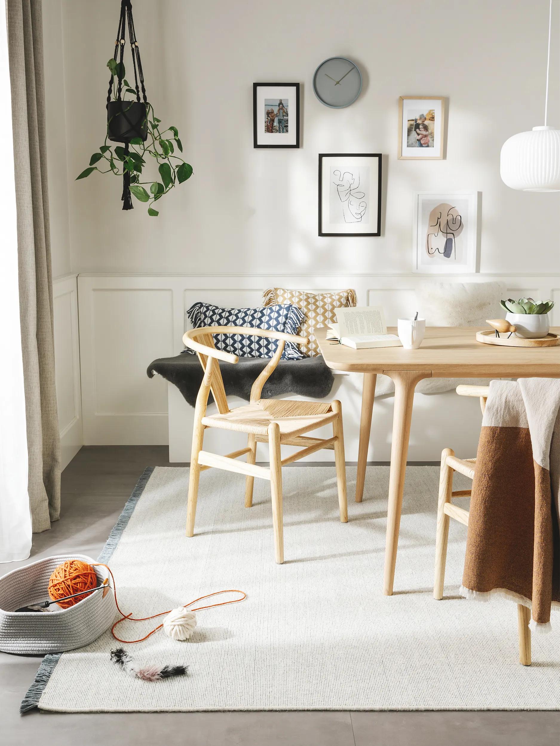 La lumière naturelle guide les formes et les textures dans un intérieur épuré, et ce tapis s’inscrit comme une note douce du style scandinave, où l’essentiel se ressent sans bruit, entre clarté et sérénité.