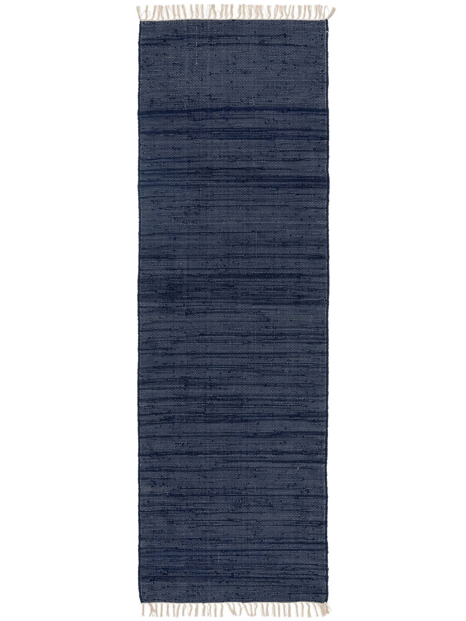 Tapis scandinave à franges de couloir bleu foncé en coton 80x250 cm