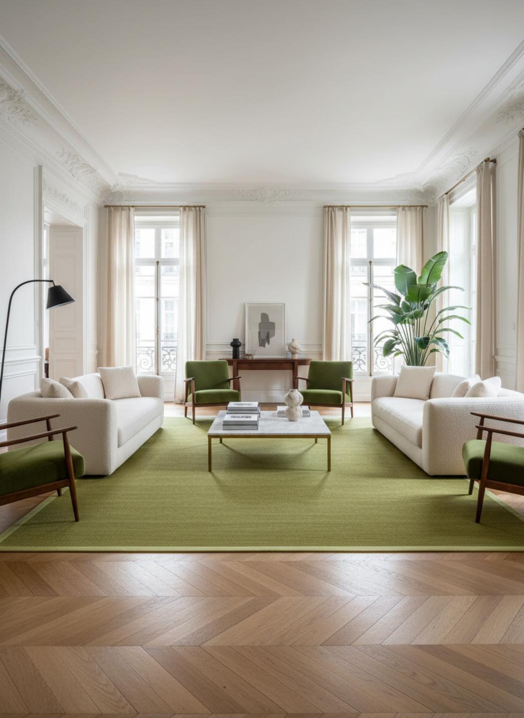 Naturellement texturé, le choix du sisal confère une matière authentique, légèrement structurée au toucher, qui évoque la chaleur subtile du nord et le raffinement d’un décor minimal. La fibre tissée capte la lumière et crée un relief doux, parfaitement accordé à un intérieur épuré.