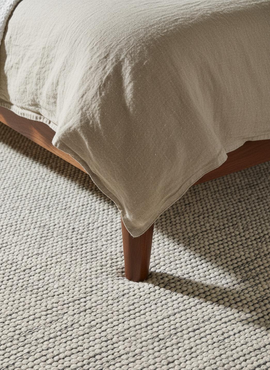 La lumière danse sur une surface légèrement texturée, révélant une palette minimaliste qui privilégie l'apaisement visuel. La densité feutrée apporte un confort immédiat, comme une caresse chaleureuse au contact des pieds, tandis que la palette favorise l'agrandissement de l'espace sans surcharge, laissant respirer la pièce.