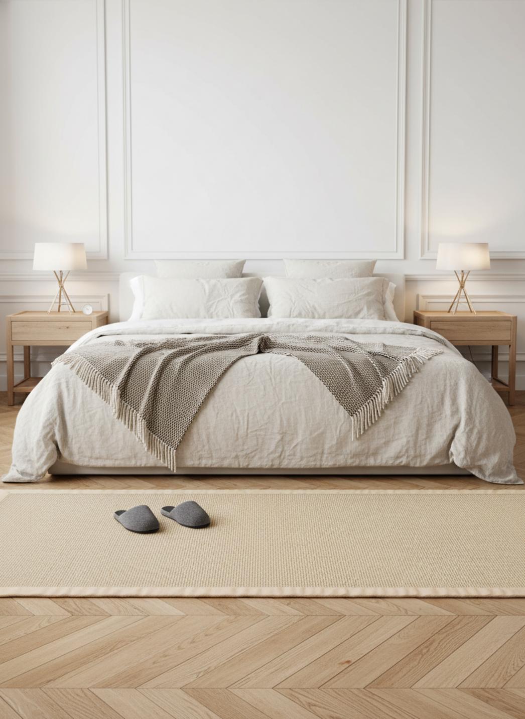 Dans un intérieur inspiré du Nord, la proposition se fait douce et aérienne, fidèle à l'esprit scandinave : lumière diffuse, lignes épurées et une sensation d'espace qui respire. La présence du tapis transforme la pièce sans l'alourdir, en apportant une touche délicate et contemporaine.