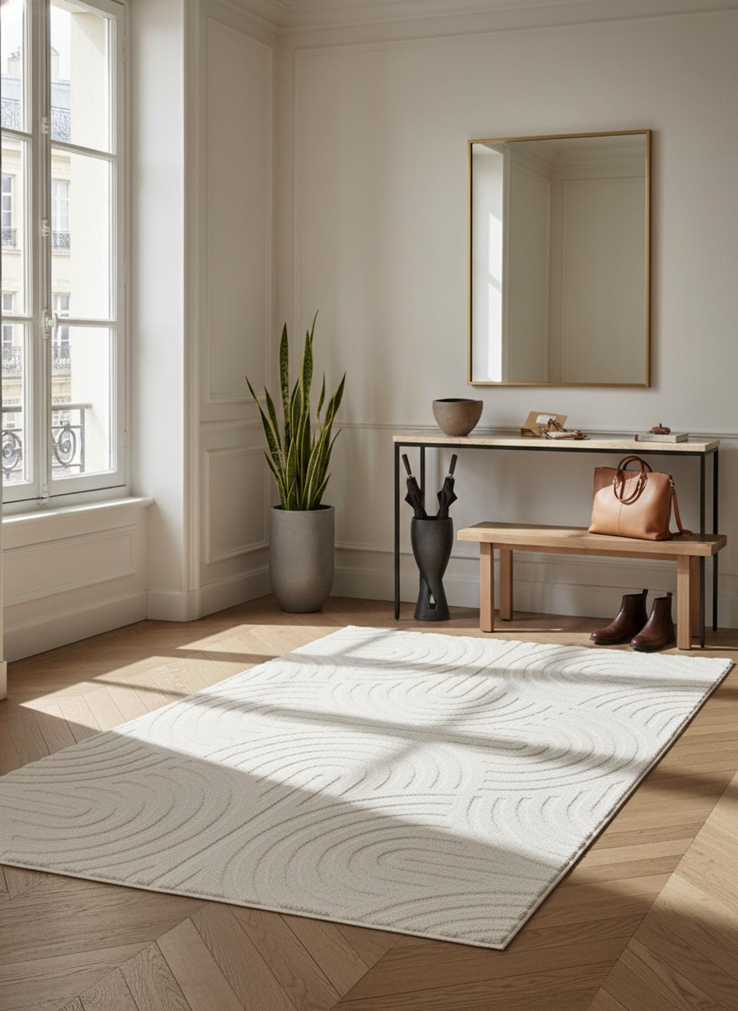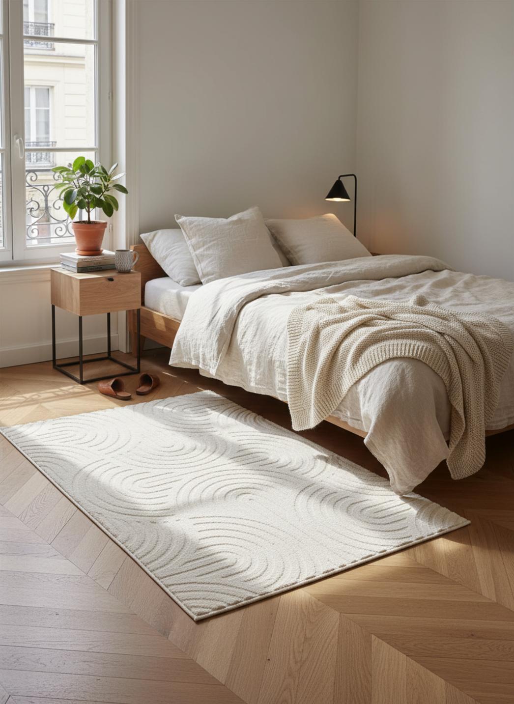 La lumière naturelle se prolonge sur ses motifs : l’ensemble apporte de la profondeur sans alourdir, souligne les perspectives et offre une sensation d’équilibre idéale pour une ambiance contemporaine, scandinave ou minimaliste, selon le mobilier qui l’entoure.