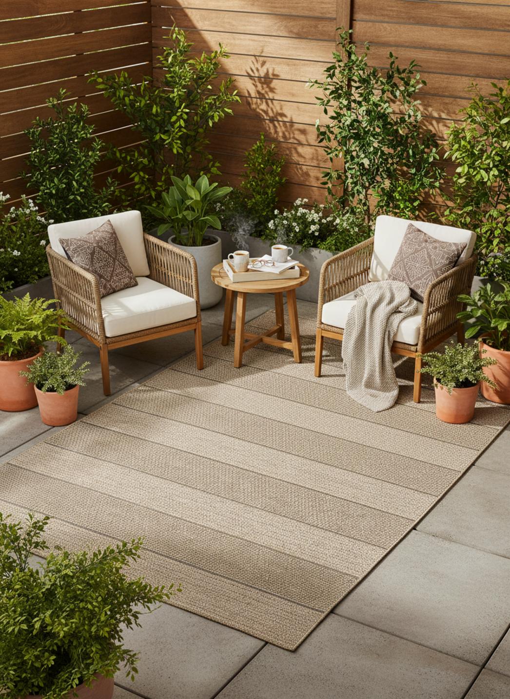 Épuré et chaleureux, ce tapis au style scandinave séduit par son motif à bandes et la teinte apaisante de son marron naturel. Dans un format de 80x150 cm, il s’intègre harmonieusement sur une terrasse, un balcon ou un petit patio, où il diffuse une ambiance douce et équilibrée. Inspiré du design nordique, son motif linéaire apporte structure et régularité tout en conservant une simplicité élégante. Le marron naturel, rappelant la chaleur du bois et des matières brutes, crée une atmosphère réconfortante et authentique. Ce tapis s’accorde parfaitement avec les matériaux naturels comme le rotin, la pierre ou le bois clair, renforçant un esprit scandinave empreint de calme et de raffinement. Placé sous une petite table, un banc ou dans un coin détente, il unifie l’espace avec discrétion et élégance. Véritable expression du minimalisme nordique, il transforme les extérieurs en lieux accueillants, lumineux et d’une élégance naturelle intemporelle.