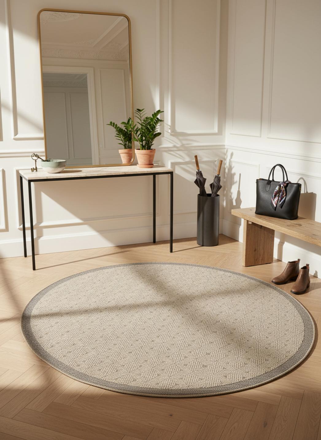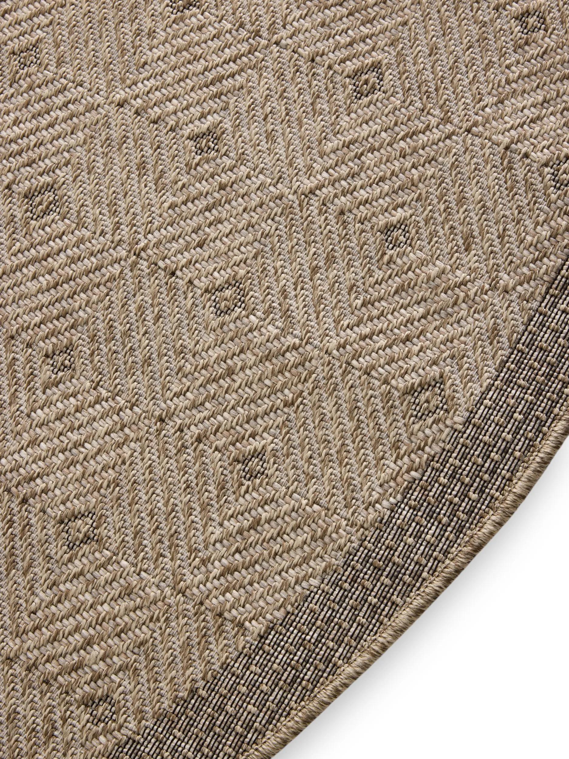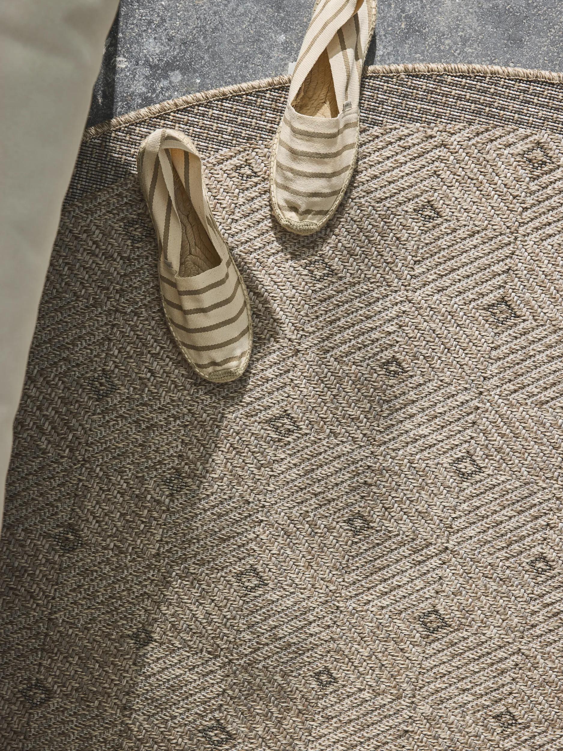 Tapis scandinave motif à points rond marron naturel d'intérieur et d'extérieur 120 cm de diamètre