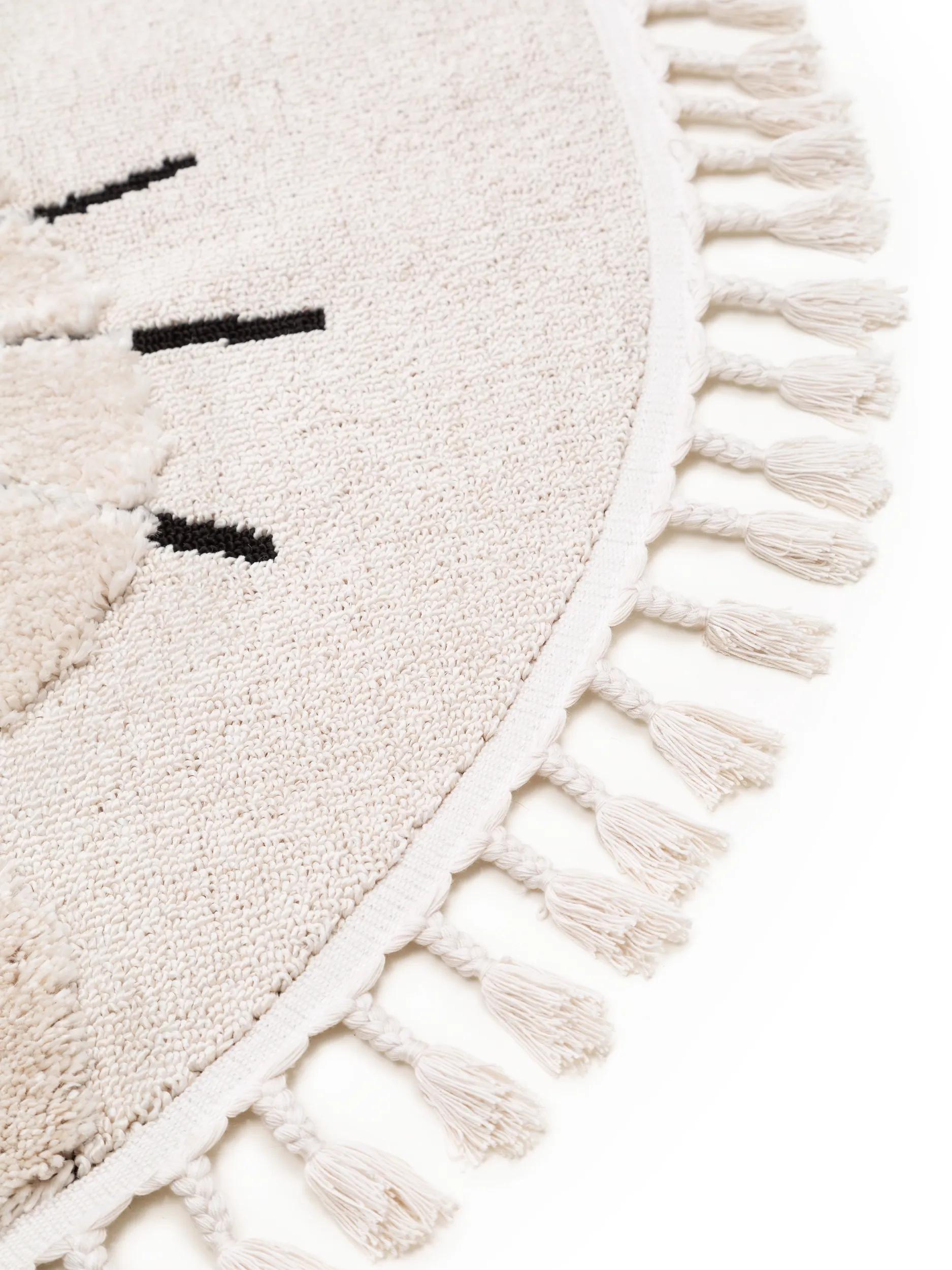 Tapis scandinave motif animal chat rond enfant crème 120 cm de diamètre