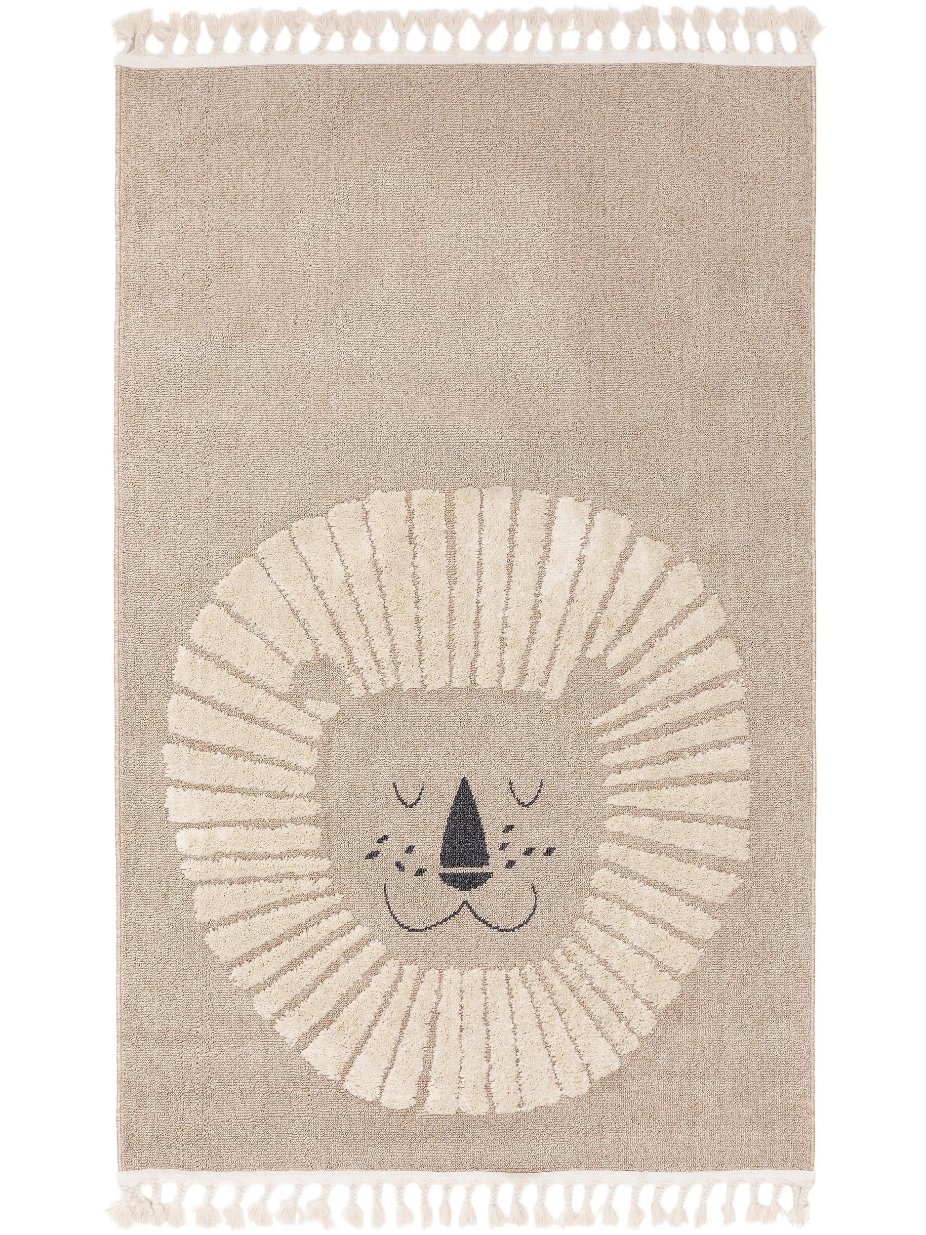Tapis scandinave motif animal lion enfant beige 90x130 cm
