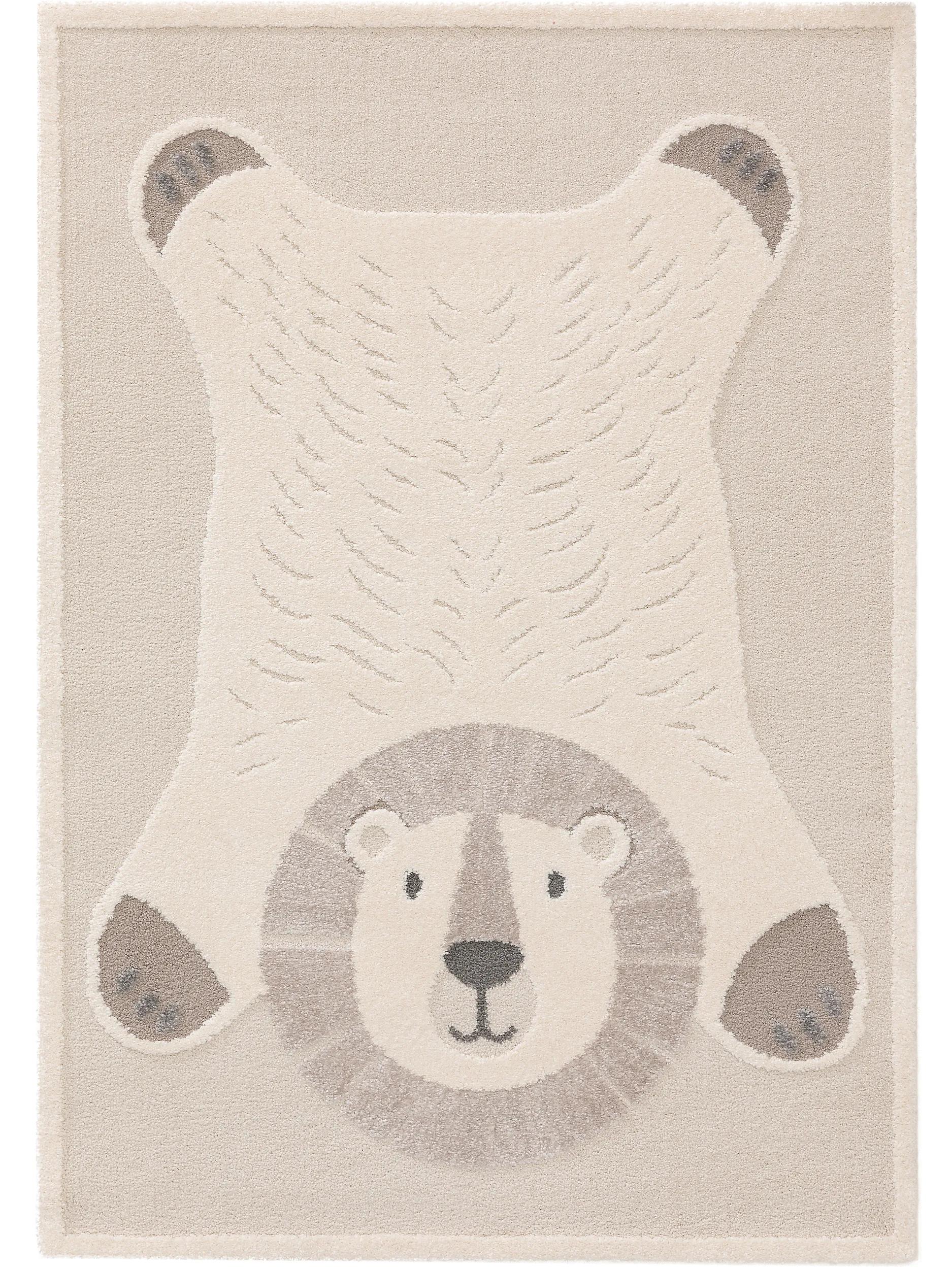 Tapis scandinave motif animal lion enfant crème et beige 80x150 cm