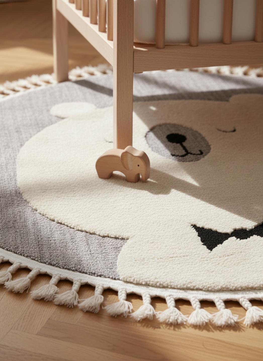 Tapis scandinave motif animal ourson rond enfant gris 120 cm de diamètre