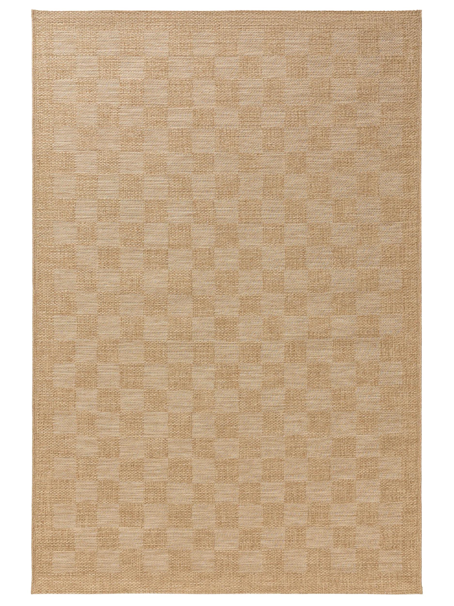 Tapis scandinave motif damier marron clair d'intérieur et d'extérieur 200x290 cm