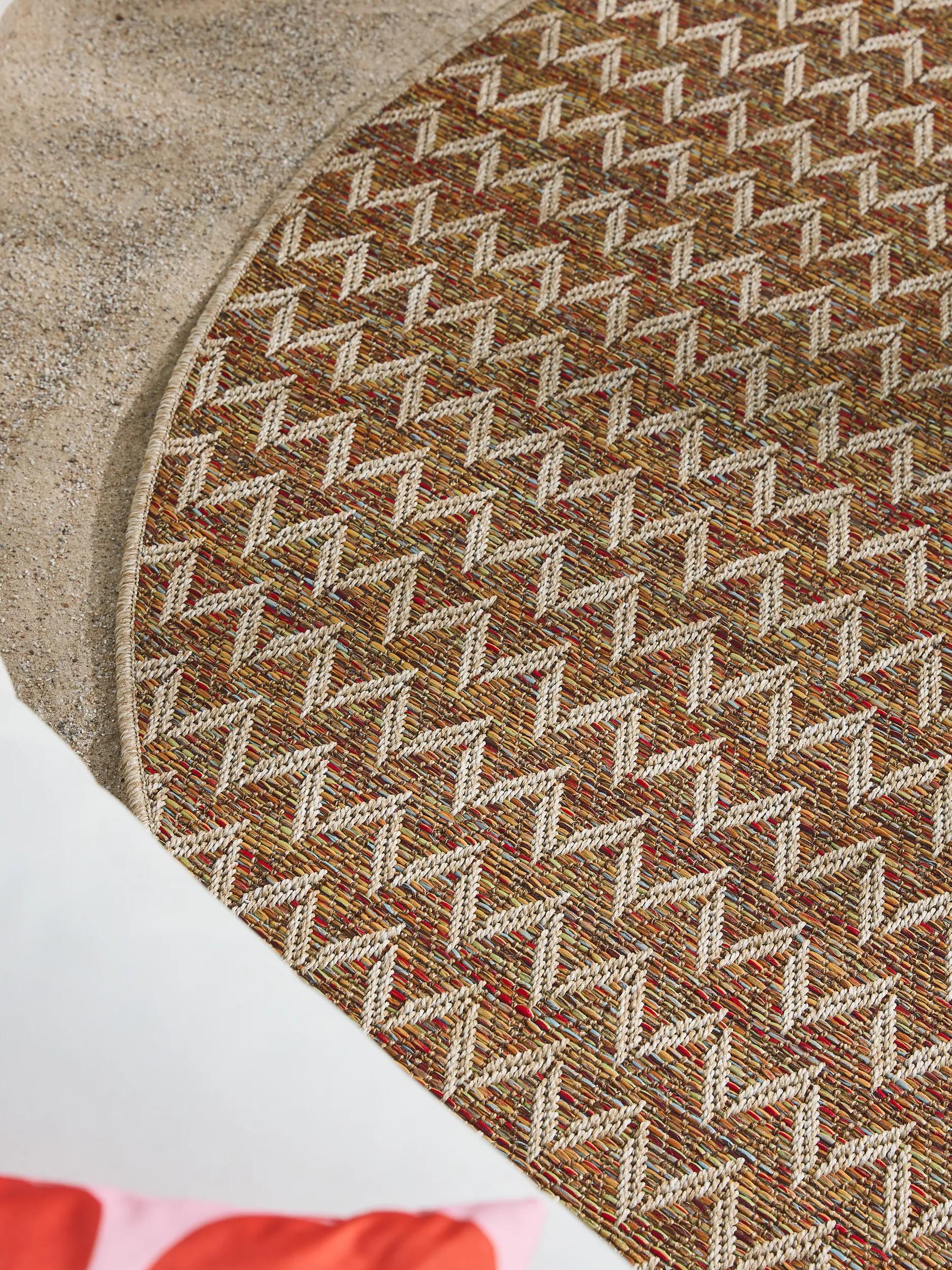Tapis scandinave motif géométrique rond marron d'intérieur et d'extérieur 160 cm de diamètre