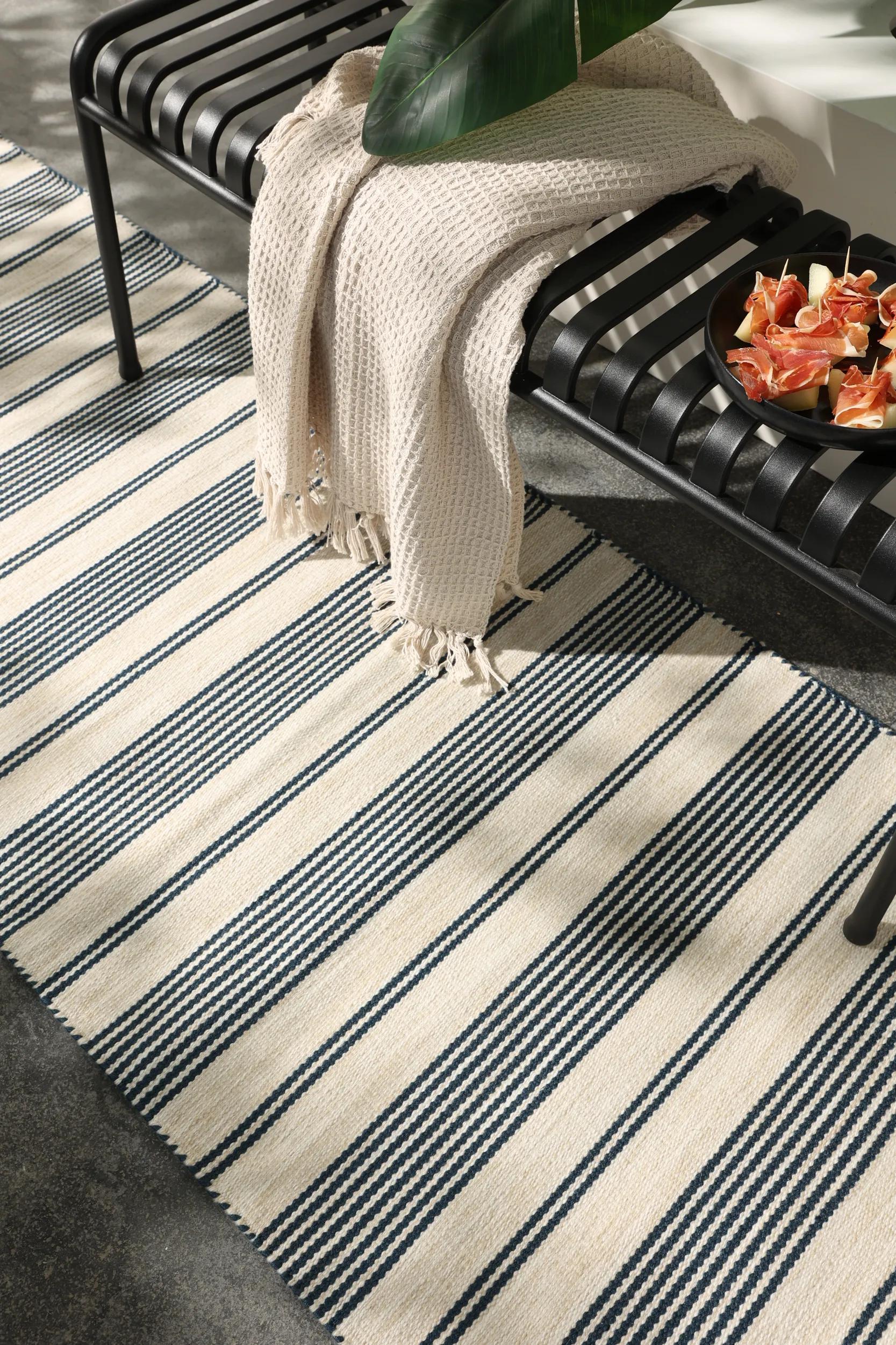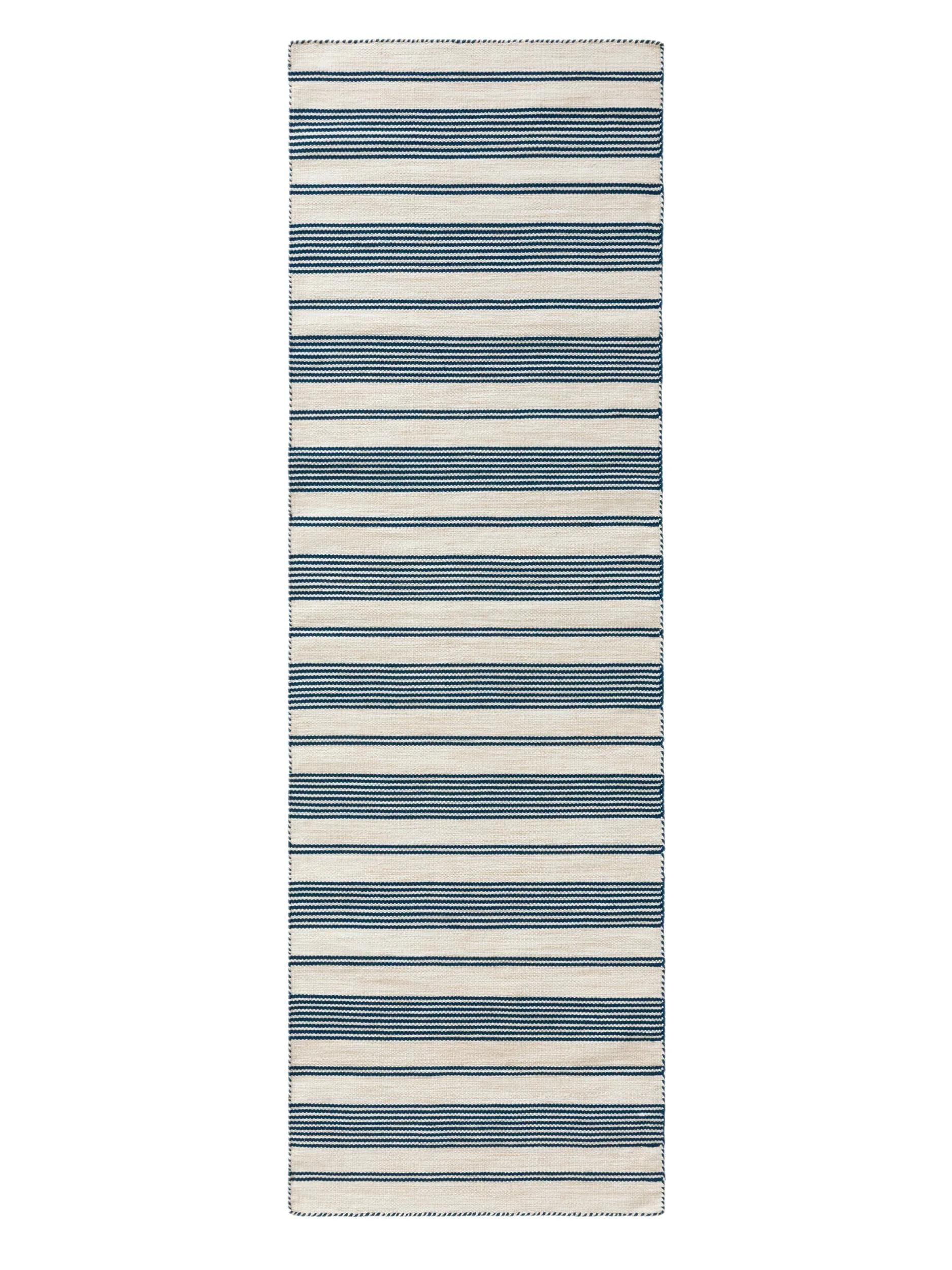 Tapis scandinave motif rayé de couloir beige et bleu d'intérieur et d'extérieur 80x250 cm