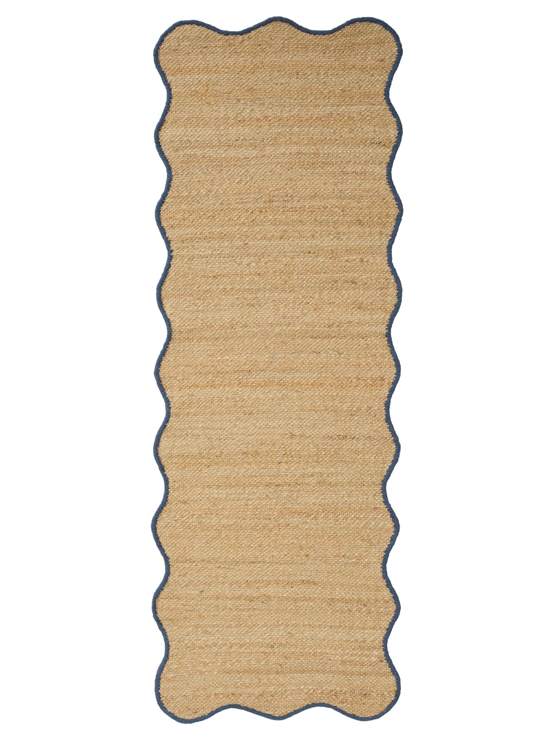 Tapis scandinave motif vague de couloir marron et bleu en jute 80x250 cm