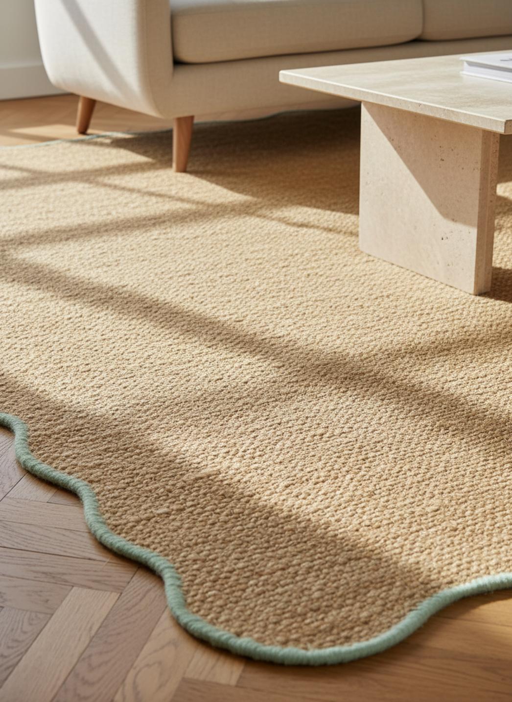Au quotidien, ce tapis sublime un salon moderne, adoucit une chambre claire et complète un bureau minimaliste sans en imposer la présence ; il dialogue naturellement avec le rotin, le chêne blanchi et des textiles aux teintes sableuses.