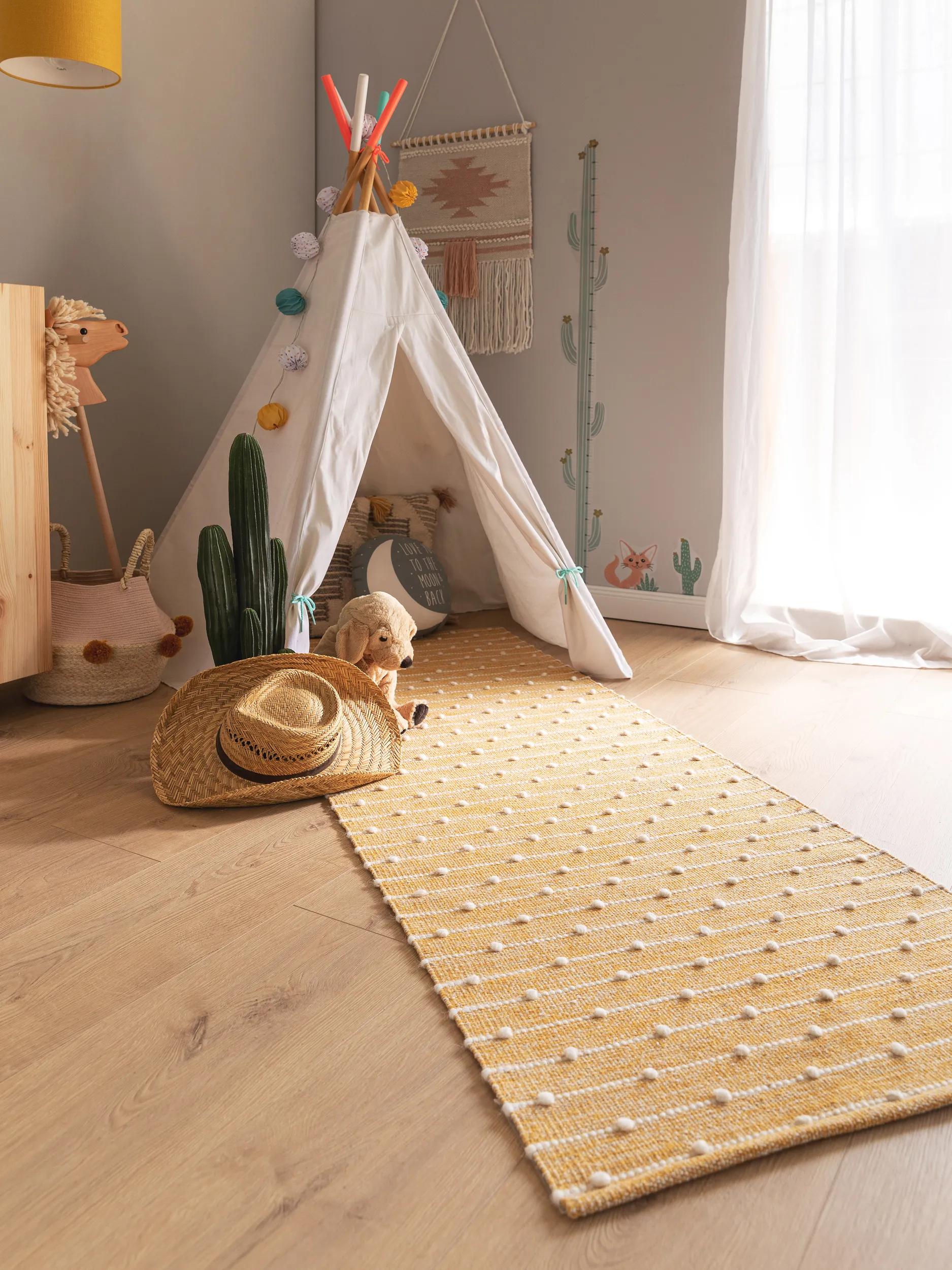 Tapis scandinave perlé de couloir jaune en coton 70x200 cm