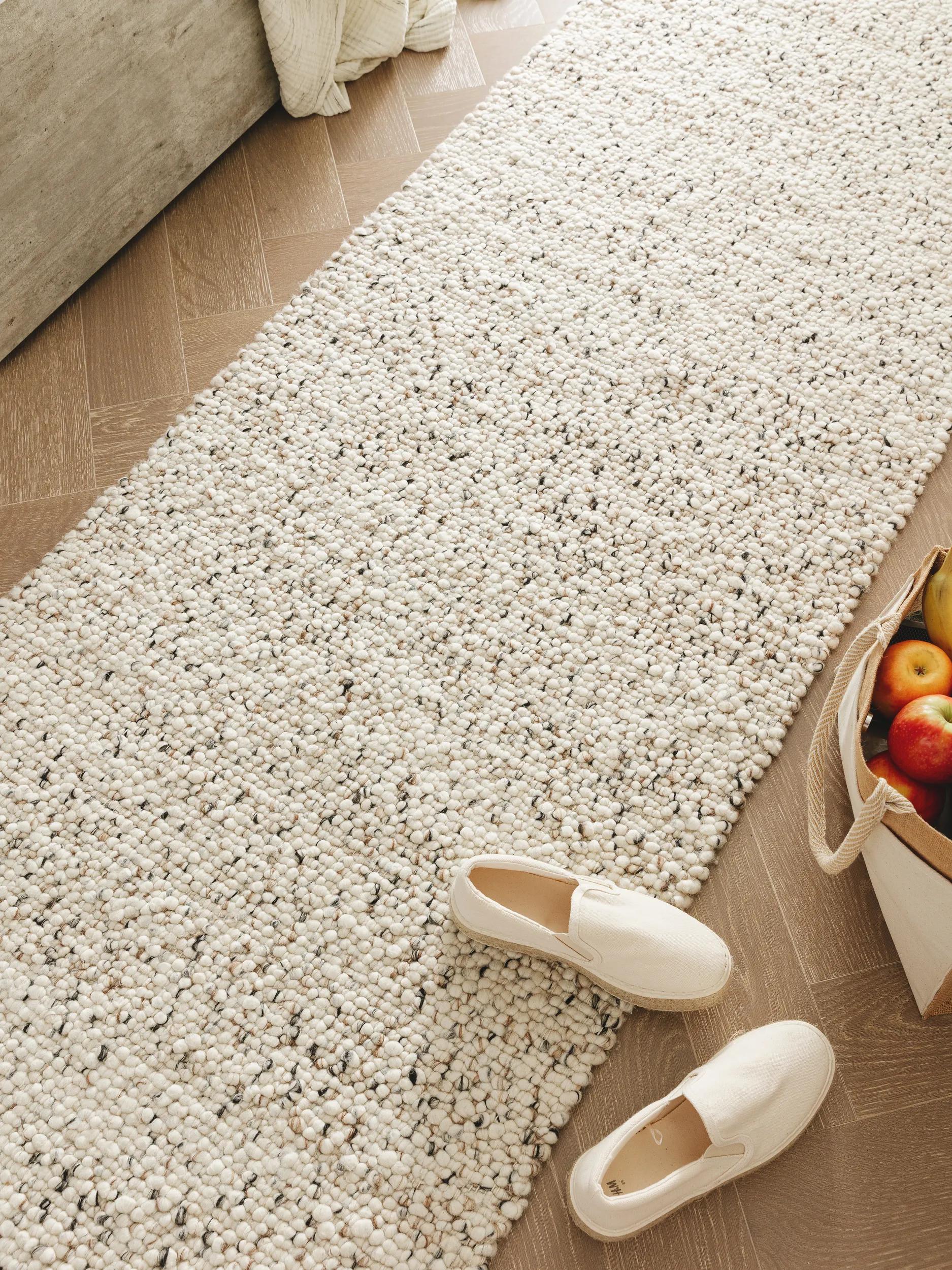 Tapis scandinave perlé descente de lit beige chiné en laine 80x250 cm