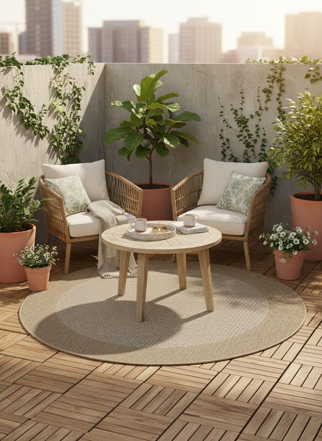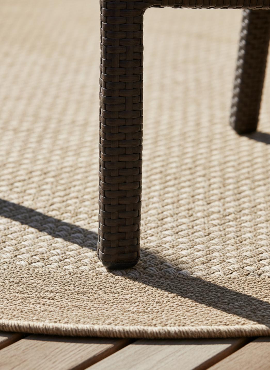 La lumière du matin glisse sur ses teintes de marron clair, révélant la douceur d’un tissage aux nuances subtiles. Ce tapis scandinave rond de 120 cm de diamètre insuffle une atmosphère à la fois épurée et chaleureuse, idéale pour un balcon, une terrasse urbaine ou un petit coin détente au jardin. Sa forme circulaire adoucit les lignes du mobilier extérieur et favorise une sensation de fluidité visuelle, propre au design nordique. Inspiré de la nature et de la simplicité, il crée une bulle apaisante où les matières naturelles se mêlent à la lumière. Sur un sol en bois clair ou en pierre brute, il dialogue avec les textures environnantes et fait naître une harmonie tranquille. Son format compact lui permet de s’intégrer aisément à tout aménagement, tout en affirmant une véritable présence décorative. Les reflets du marron clair captent la chaleur du soleil, composant un décor réconfortant, propice aux instants suspendus. Un tapis rond au charme scandinave, pensé pour magnifier les espaces extérieurs avec naturel et élégance, où chaque détail évoque la sérénité du nord et la douceur d’une fin d’après-midi d’été.