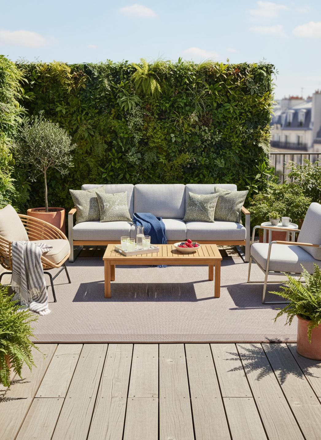 Naturel et équilibré, ce tapis au style scandinave séduit par son tressage géométrique et la douceur terreuse de ses tons beige et marron. Dans un format de 120x170 cm, il s’intègre avec élégance sur une terrasse, un balcon ou un petit patio, où il diffuse une atmosphère à la fois apaisante et chaleureuse. Son motif géométrique, inspiré du design nordique, apporte une structure visuelle subtile et moderne qui met en valeur la simplicité du tressage à plat. Les teintes naturelles, évoquant le bois et la fibre végétale, s’accordent parfaitement aux matériaux bruts comme le rotin, la pierre ou le bois clair. Ce tapis s’harmonise avec les ambiances minimalistes ou bohèmes, apportant une touche d’authenticité raffinée. Placé sous une petite table ou un coin détente, il unifie l’espace avec douceur et cohérence. Véritable reflet du design scandinave, il transforme les extérieurs en lieux lumineux, sereins et empreints d’une élégance naturelle.
