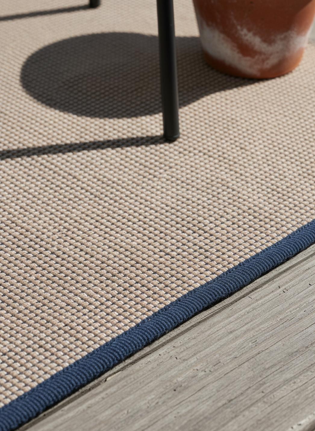 Tapis scandinave tressage géométrique de couloir beige et bleu d'intérieur et d'extérieur 70x200 cm