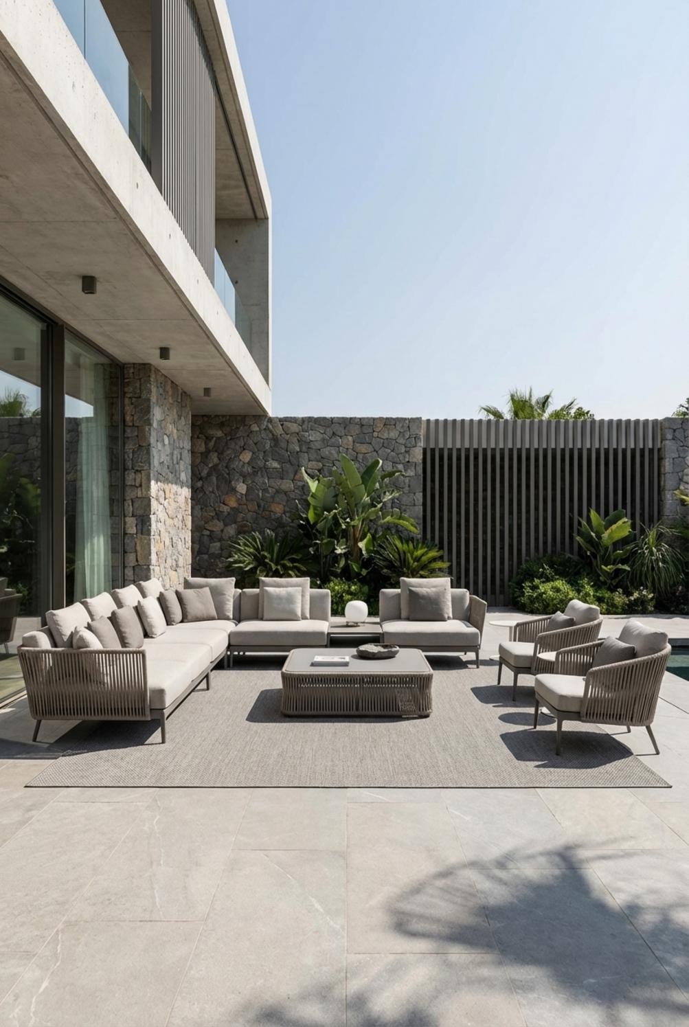 Élégance nordique et sobriété contemporaine s’unissent dans ce tapis scandinave tressé à plat gris, conçu pour sublimer les grands espaces extérieurs. Sa forme carrée de 300x300 cm crée une parfaite symétrie, idéale pour structurer une vaste terrasse, un patio d’hôtel ou un salon de jardin à l’esthétique épurée. Le gris, teinte intemporelle par excellence, évoque la pierre et les matières naturelles, diffusant une sensation de calme et d’équilibre. Le tressage plat, finement régulier, capte la lumière avec retenue et révèle toute la richesse de sa texture sous le soleil. Ce tapis d’extérieur s’intègre dans des décors minimalistes comme dans des espaces chaleureux, apportant une note à la fois moderne et apaisante. Il met en valeur les bois clairs, le métal brossé ou les textiles neutres, composant un ensemble cohérent et raffiné. Son format généreux invite à la convivialité : on y installe un grand salon de détente, une table de réception ou un coin lounge ouvert sur la nature. Lorsque la lumière décline, ses nuances grises se teintent de reflets argentés, enveloppant l’espace d’une atmosphère feutrée et élégante. Ce tapis carré incarne l’esprit scandinave dans sa plus belle expression : un équilibre entre rigueur et douceur, fonctionnalité et émotion, où chaque fibre devient une ode à la simplicité raffinée.