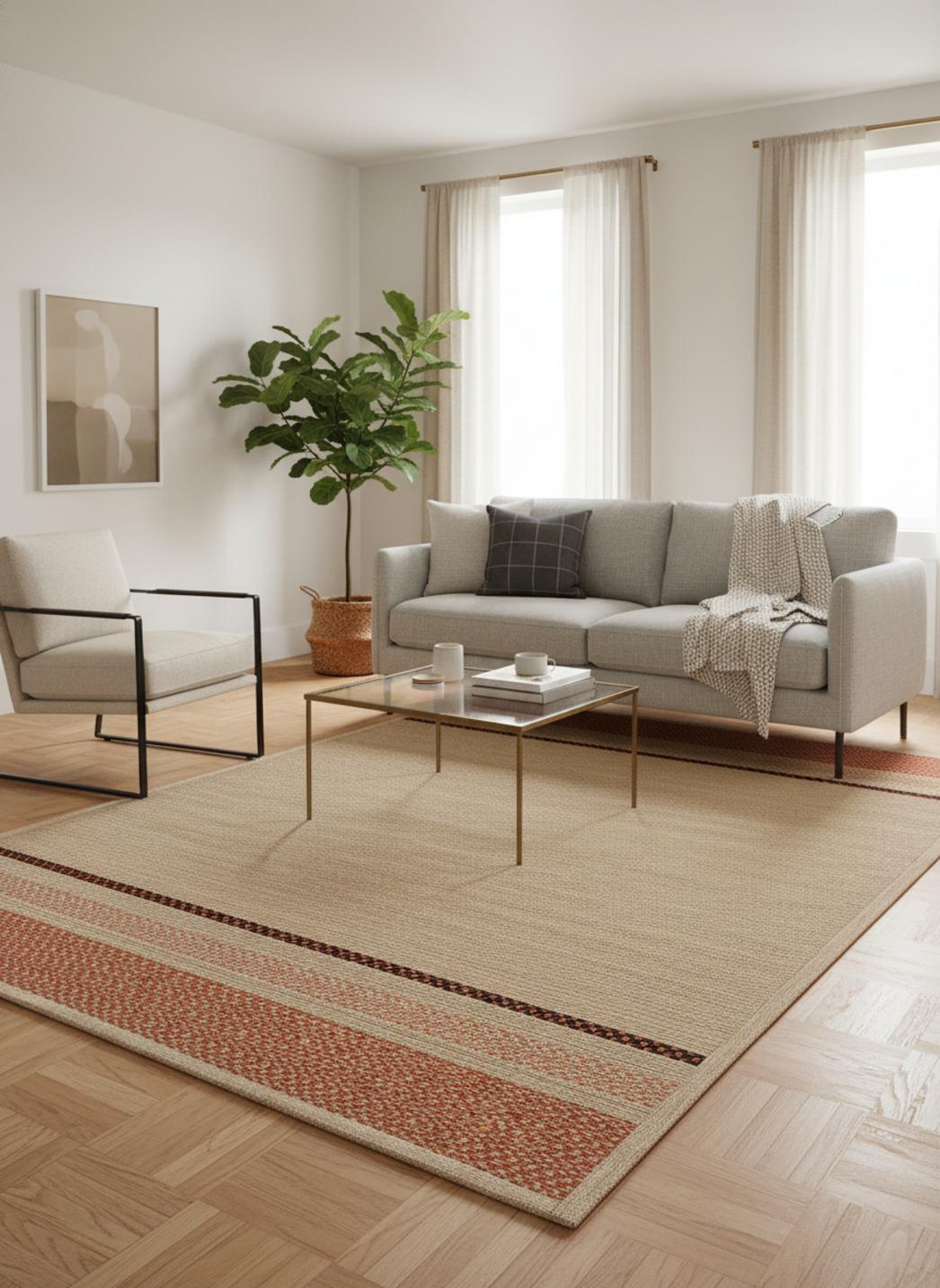 Tapis scandinave tressé beige et terracotta d'intérieur et d'extérieur 120x170 cm