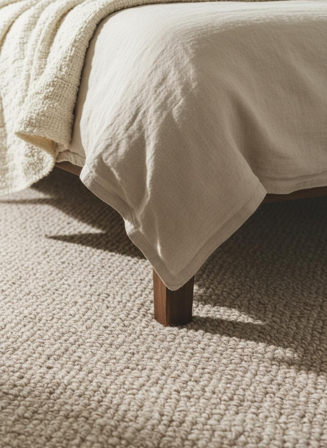 La texture tissée se révèle douce au toucher, délicatement structurée par un travail tressé qui capte la lumière et crée un relief subtil. Le rendu est tactile mais discret, pensé pour amener une sensation de cocon sans alourdir l’espace, comme une caresse visuelle sur un plancher en bois clair.