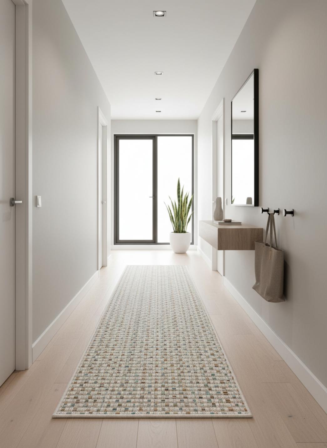 Pensé pour les passages, le format couloir accompagne la perspective d’un intérieur sans la dominer, recentrant l’espace et créant un chemin chaleureux qui adoucit le sol et guide le regard.