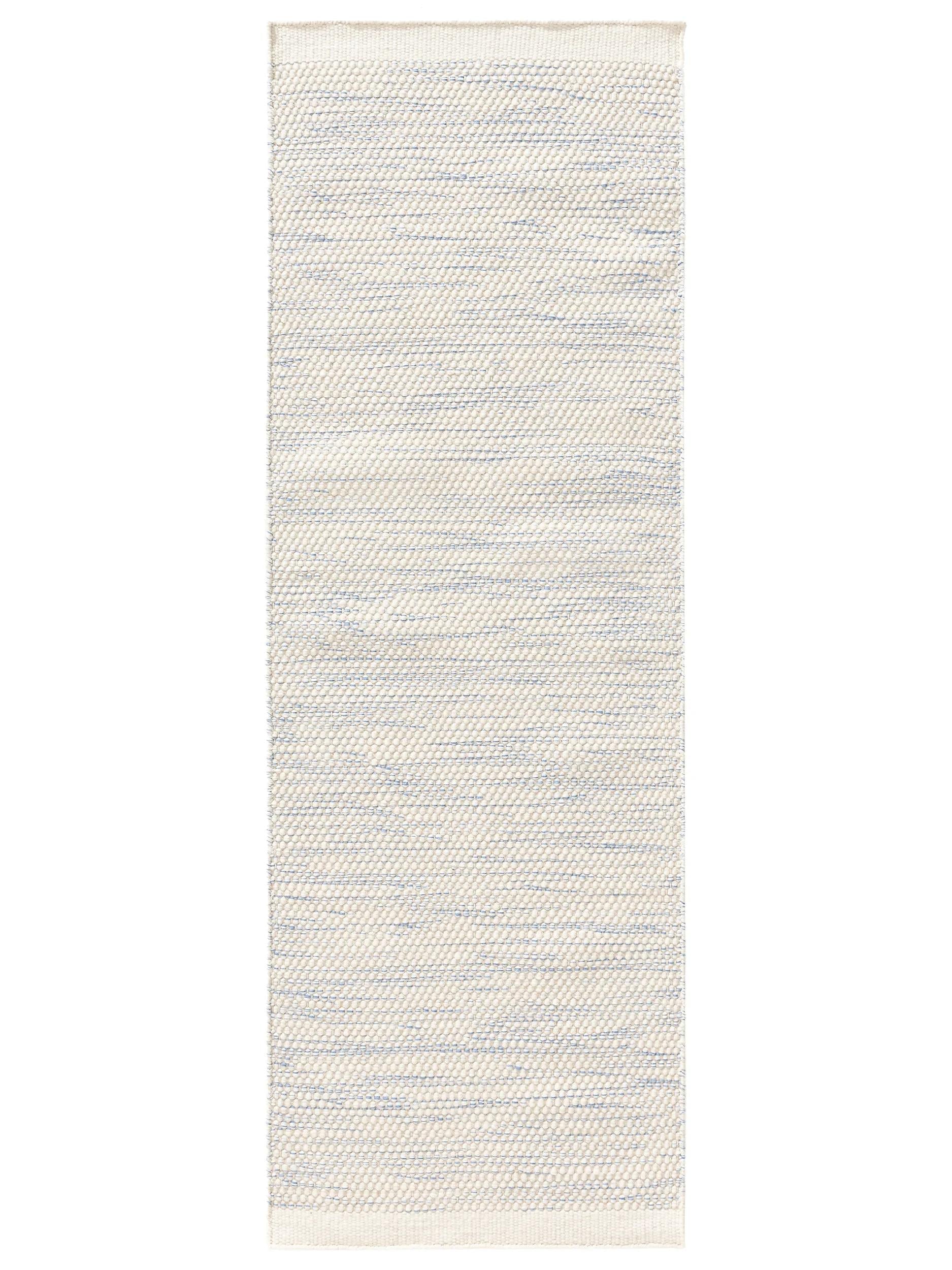 Tapis scandinave tressé descente de lit enfant blanc et bleu en laine 70x200 cm