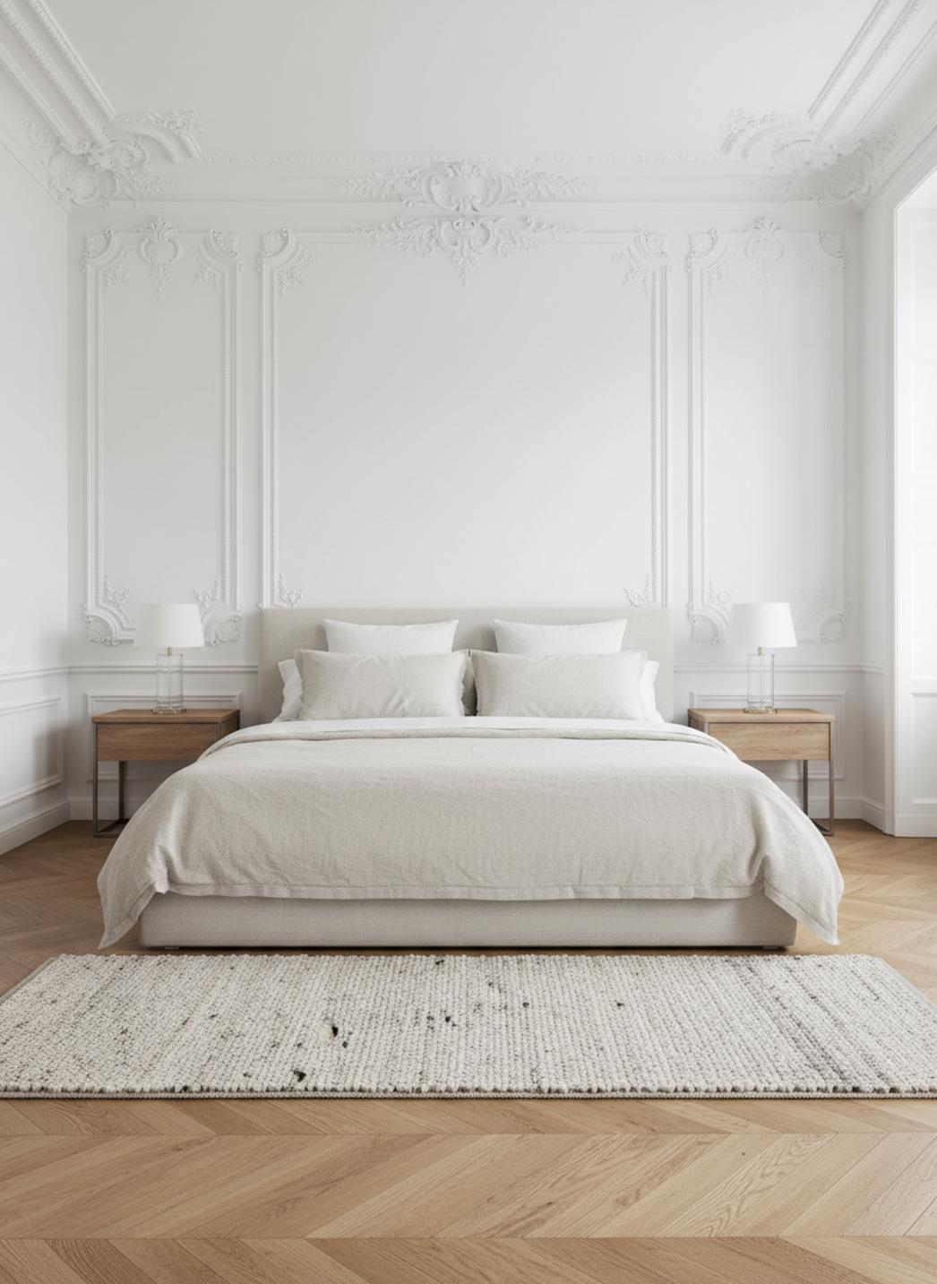 Il transforme un intérieur en douceur, modernise un salon clair ou adoucit une chambre épurée en instillant une touche tactile chaleureuse. La surface en laine préserve une sensation de confort qui invite à la détente, tout en conservant un rendu propre et ordonné dans un décor minimaliste.