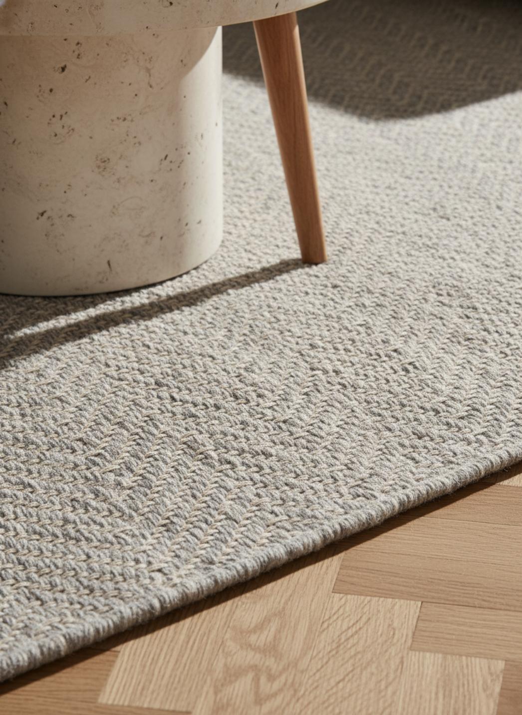 L’assemblage révèle un toucher chaleureux, proche de la laine, tout en restant facile à vivre grâce à des fibres choisies pour leur tenue et leur douceur. La finition soignée et la subtile présence des motifs tressés renforcent l’aspect artisanal, pour un rendu à la fois moderne et intemporel qui complète un intérieur nordique.