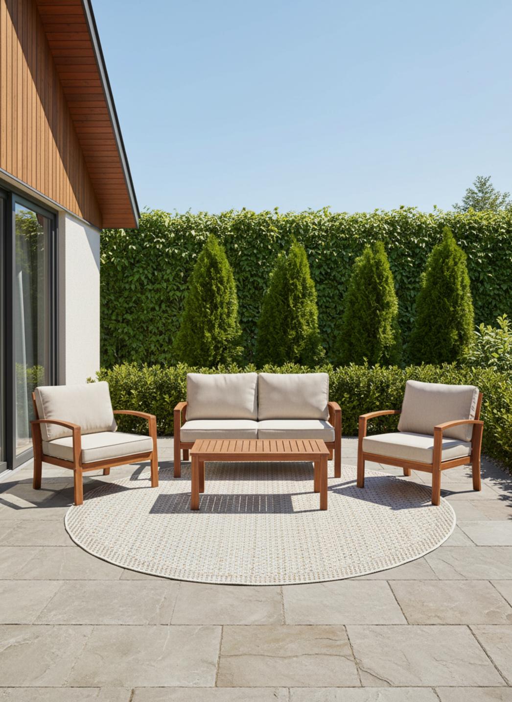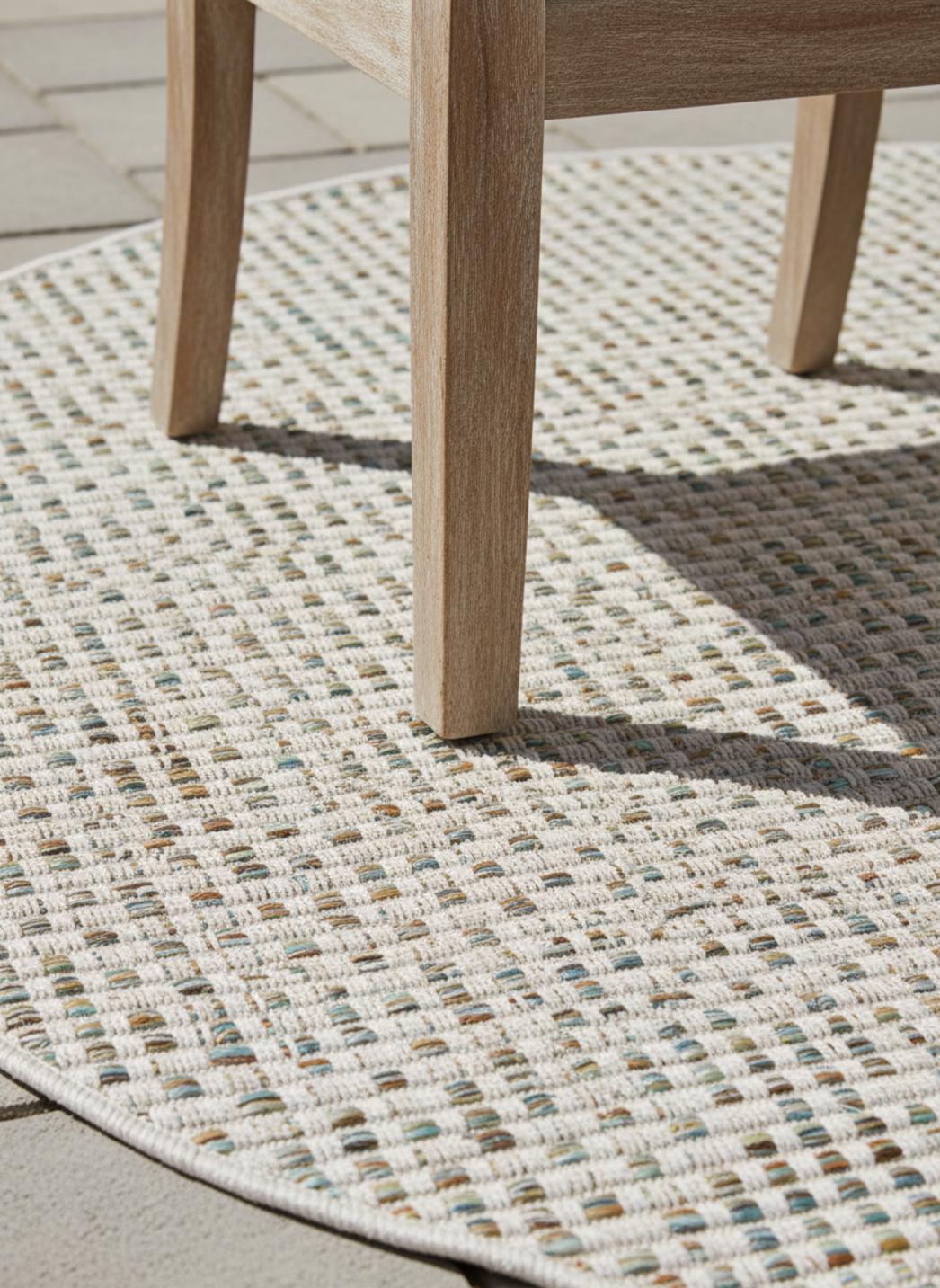 Au centre d’une terrasse ou sous une table d’extérieur, ce tapis rond tressé déploie tout le charme discret du style scandinave. Sa forme circulaire adoucit les lignes du mobilier et crée un point d’équilibre naturel dans la composition du décor. La texture tressée, à la fois dense et souple, capte la lumière avec subtilité et offre une présence chaleureuse sous les pas. Le gris, délicatement nuancé, agit comme une teinte refuge : ni froide, ni trop marquée, il s’accorde aussi bien avec les tons boisés qu’avec les couleurs minérales d’un aménagement extérieur. Dans un jardin, une pergola ou un balcon, il invite à la sérénité, transformant un espace fonctionnel en véritable cocon visuel. Sa structure ronde renforce l’harmonie et la fluidité du lieu, tout en valorisant les matières naturelles alentour. À la fois épuré et accueillant, ce modèle s’intègre idéalement dans la collection de tapis d’extérieur qui réinvente les espaces à ciel ouvert. Pour une continuité douce et graphique, laissez-vous inspirer par nos tapis d’extérieur ronds. Un tapis qui unit la rigueur nordique à la douceur des formes, et fait du plein air un lieu de détente harmonieux et stylé.