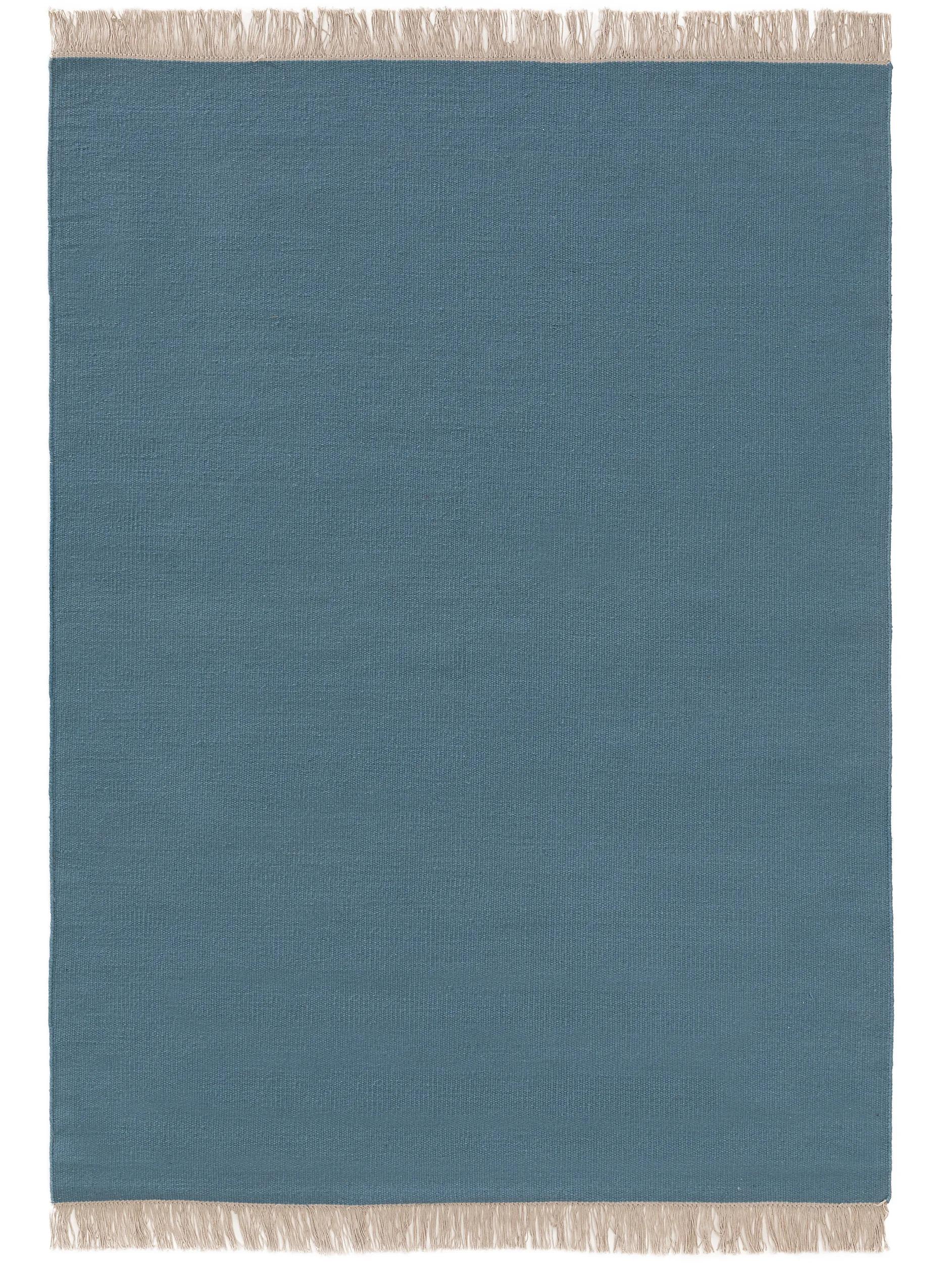 Tapis scandinave uni à franges bleu pétrole en laine 80x150 cm