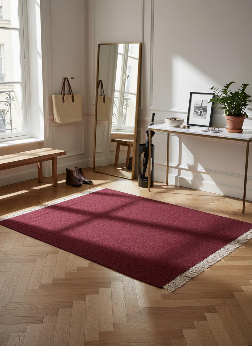 Tapis scandinave uni à franges bordeaux en laine 60x100 cm