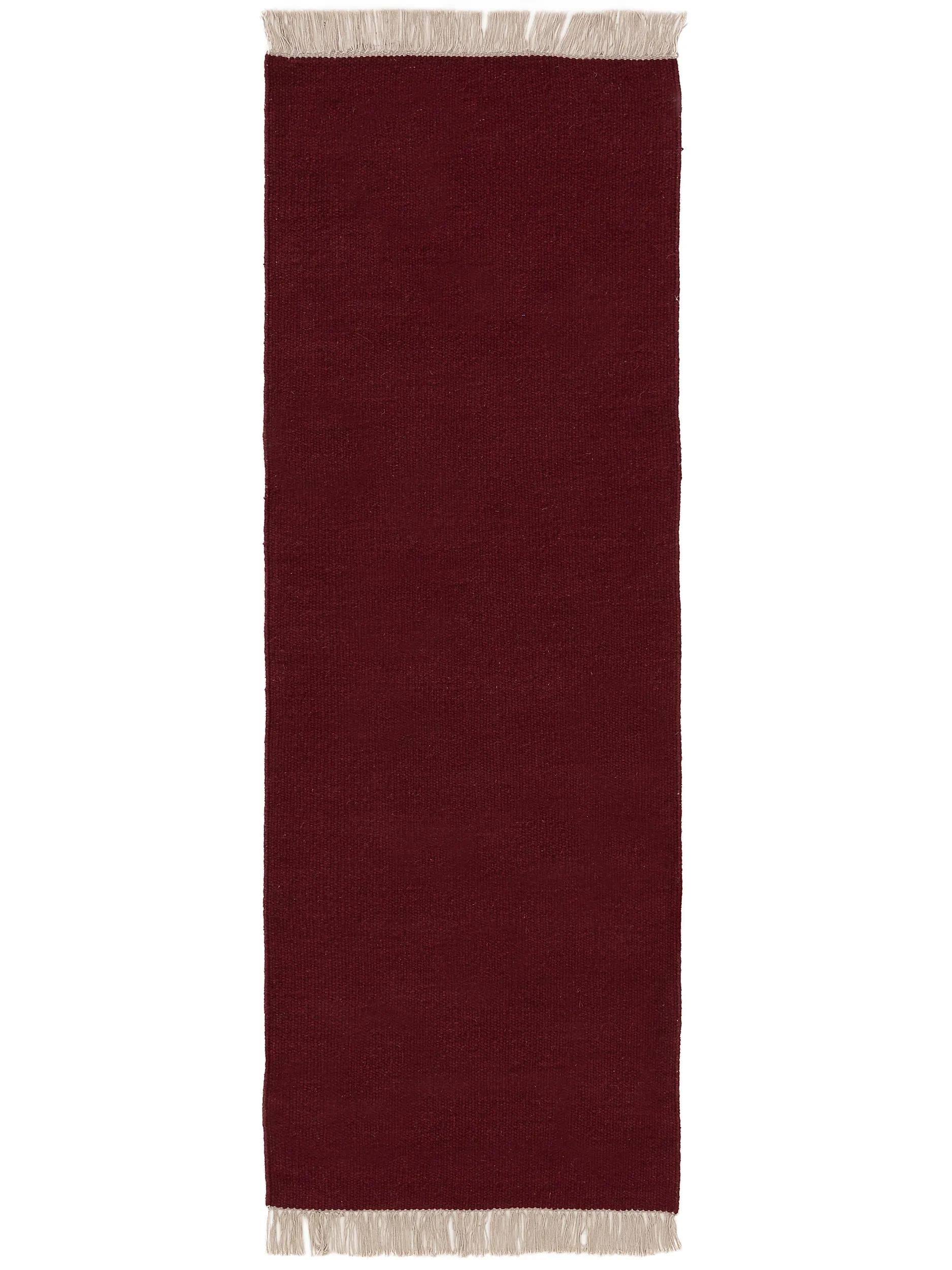 Tapis scandinave uni à franges descente de lit bordeaux en laine 80x250 cm