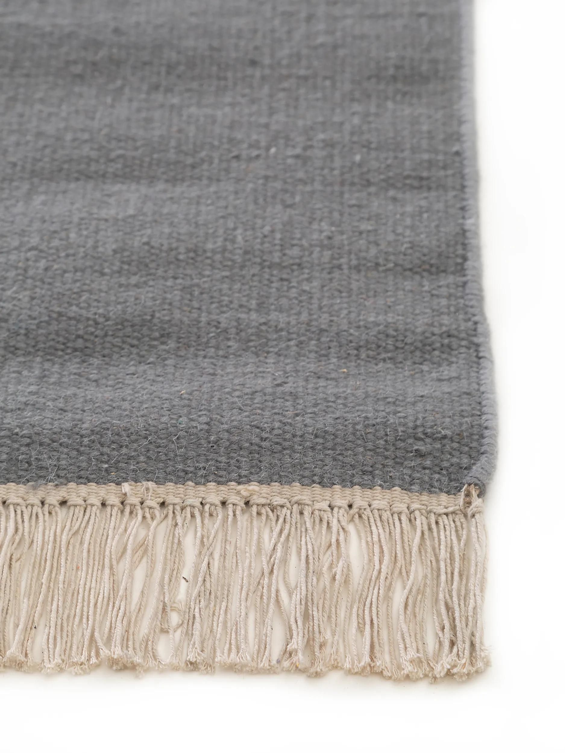 Tapis scandinave uni à franges descente de lit gris en laine 80x250 cm