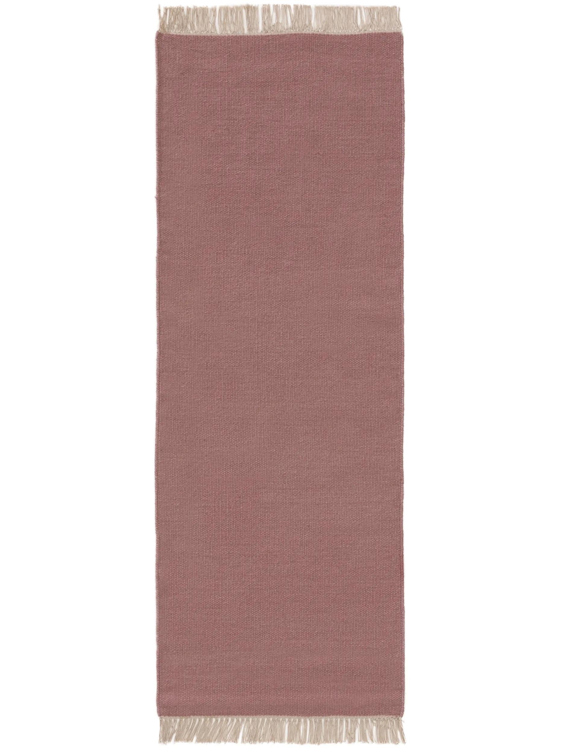 Tapis scandinave uni à franges descente de lit rose en laine 80x250 cm