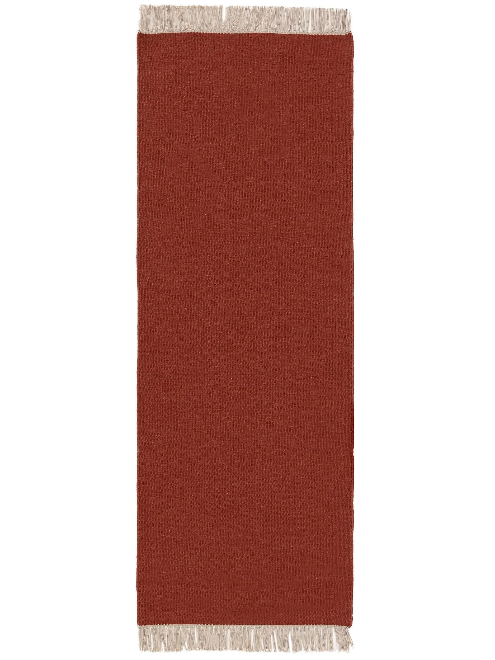 Tapis scandinave uni à franges descente de lit rouge brique en laine 80x250 cm