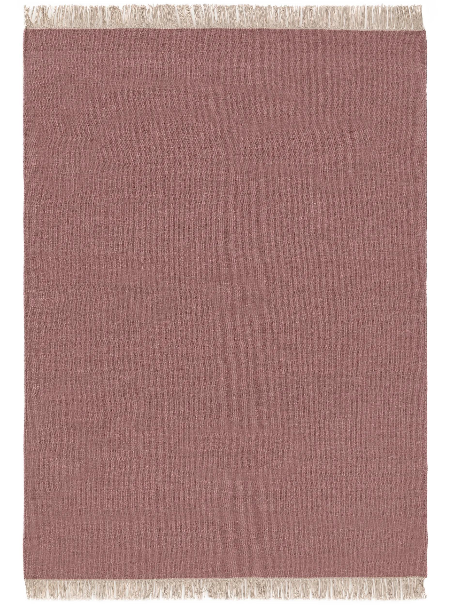 Tapis scandinave uni à franges rose en laine 80x150 cm
