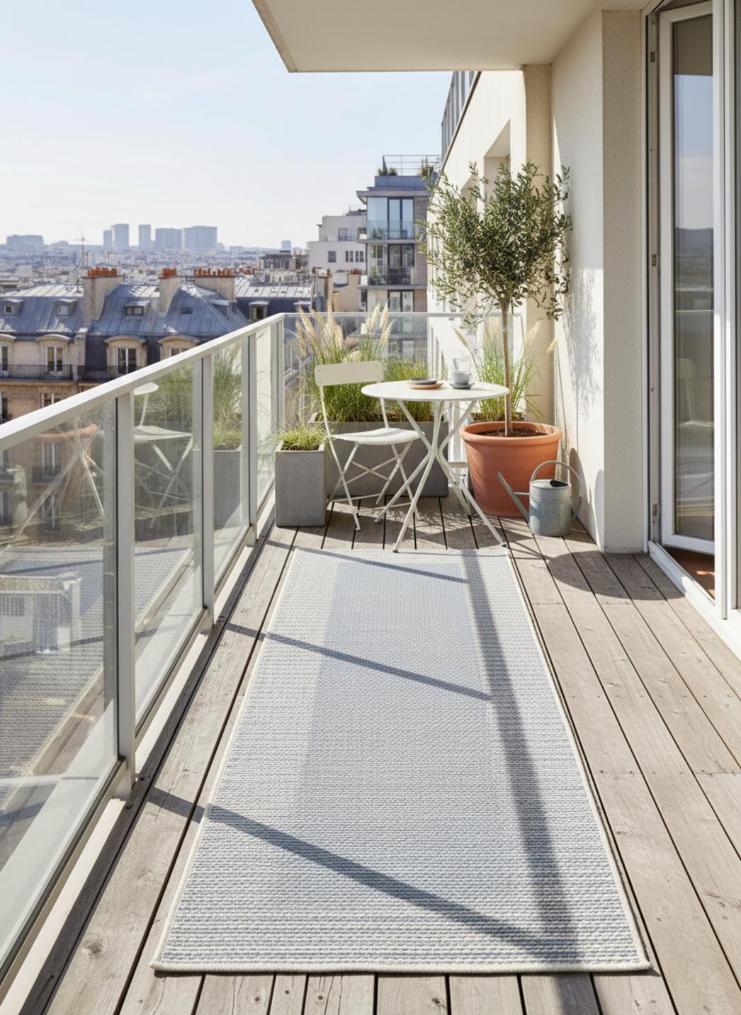 Une élégance discrète se dégage de ce tapis scandinave uni, où le bleu gris compose une teinte apaisante et raffinée. Son format de 80x250 cm accompagne les longs couloirs extérieurs, les passages de terrasse ou les entrées abritées avec une fluidité naturelle. La simplicité de sa surface met en valeur la matière tissée, tout en jouant sur les reflets changeants de la lumière. Le bleu gris, à mi-chemin entre ciel et pierre, évoque la sérénité nordique et la sobriété des décors contemporains. Sa texture douce et régulière offre une impression d’ordre et de calme, parfaite pour créer une continuité visuelle entre intérieur et extérieur. Ce tapis de couloir s’impose par sa pureté formelle, apportant fraîcheur et équilibre à chaque passage. Dans un esprit minimaliste et naturel, il transforme les allées en chemins de douceur, invitant à la détente et à la contemplation d’un design sobre et intemporel.