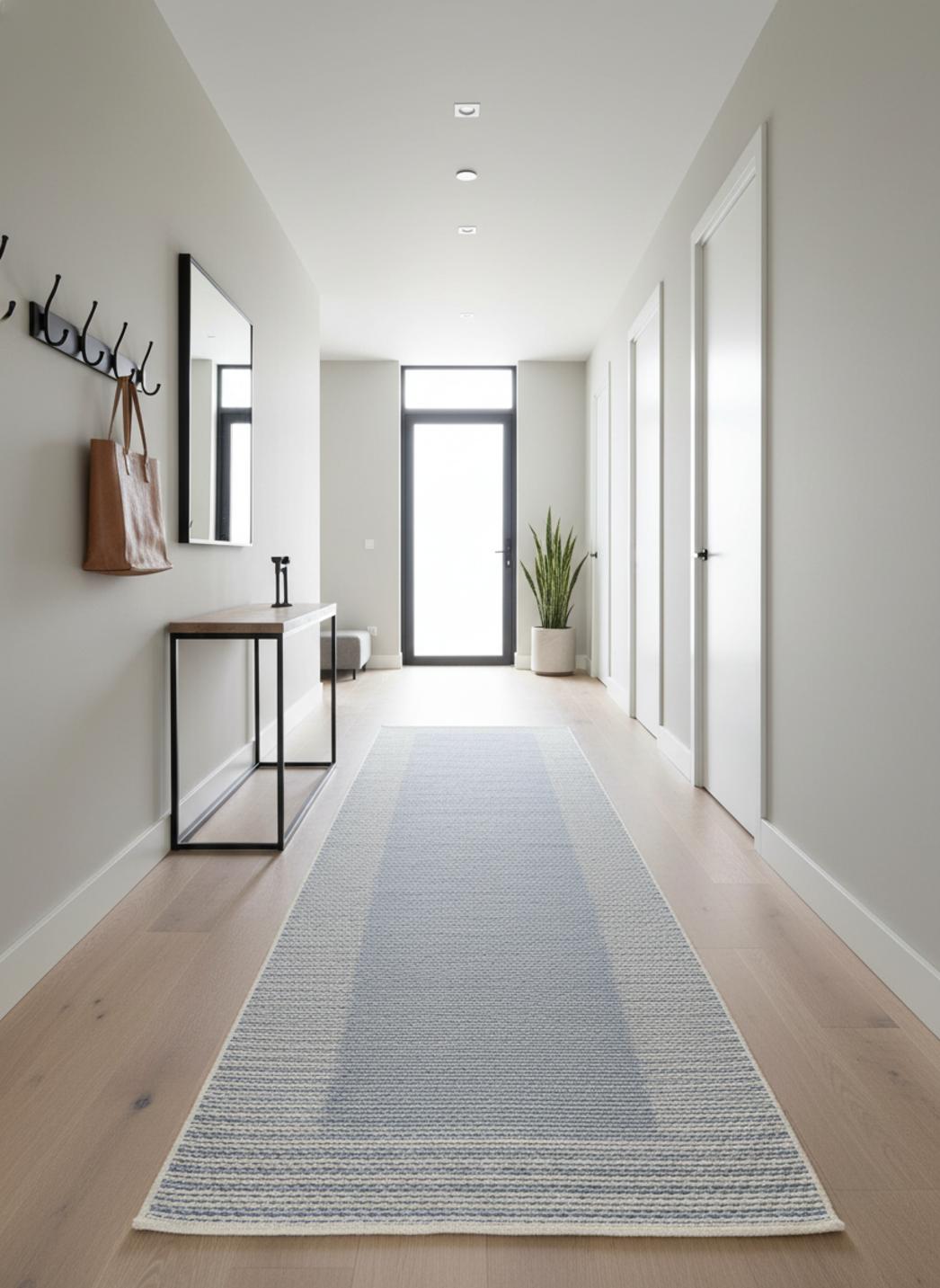 Tapis scandinave uni de couloir bleu gris d'intérieur et d'extérieur 80x250 cm