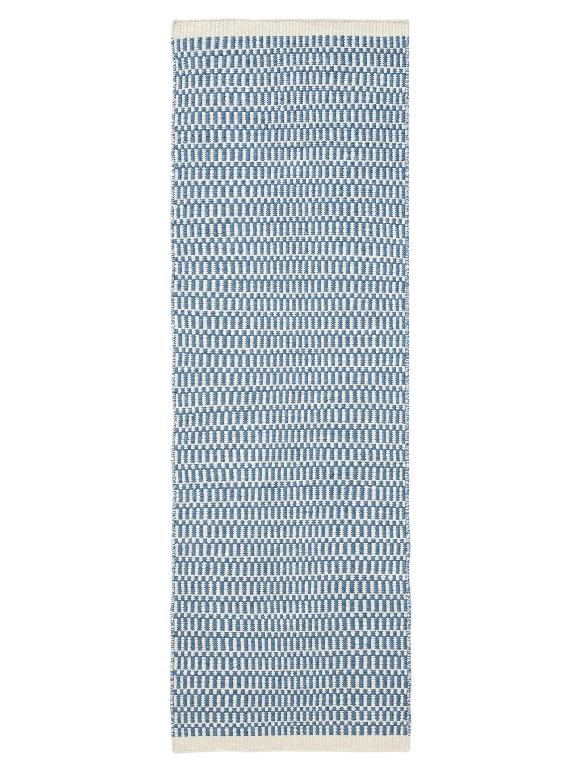 Tapis scandinave uni descente de lit bleu en laine 80x250 cm