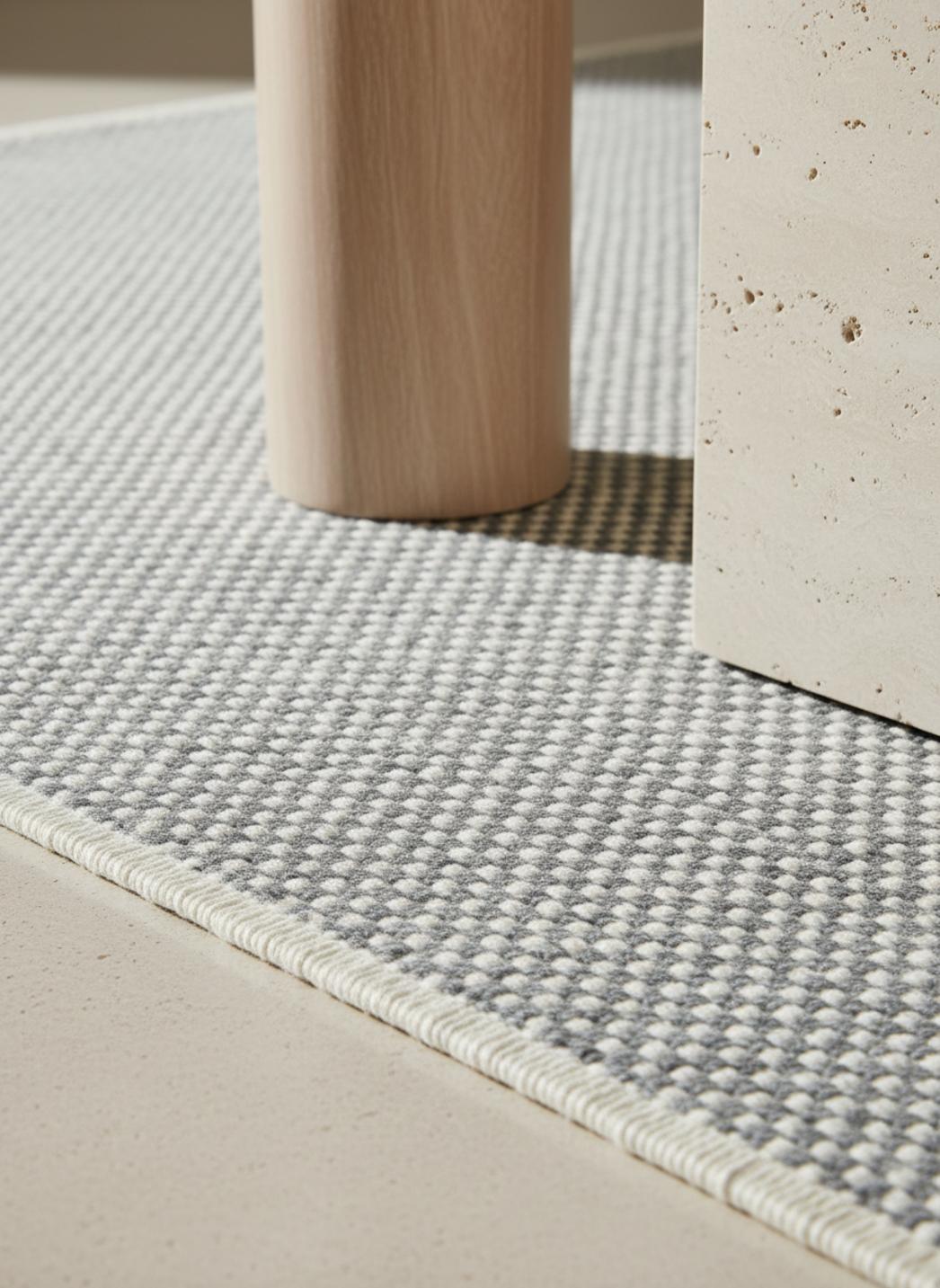 Imaginé pour sublimer la lumière naturelle, ce tapis offre une présence discrète et apaisante qui respire la simplicité du style scandinave, avec une palette douce où le gris devient matière et nuance plutôt que contraste.