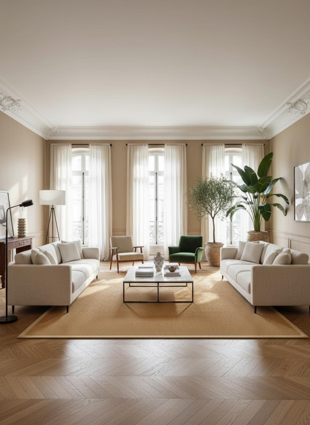 Pensé pour les intérieurs qui privilégient les matières naturelles et les lignes épurées, il dialogue avec le bois blond, le rotin et le lin lavé, soulignant la convivialité sans ornements superflus. Sa surface unie laisse la place aux volumes et aux contrastes doux, et devient un élément décoratif qui structure sans encombrer.