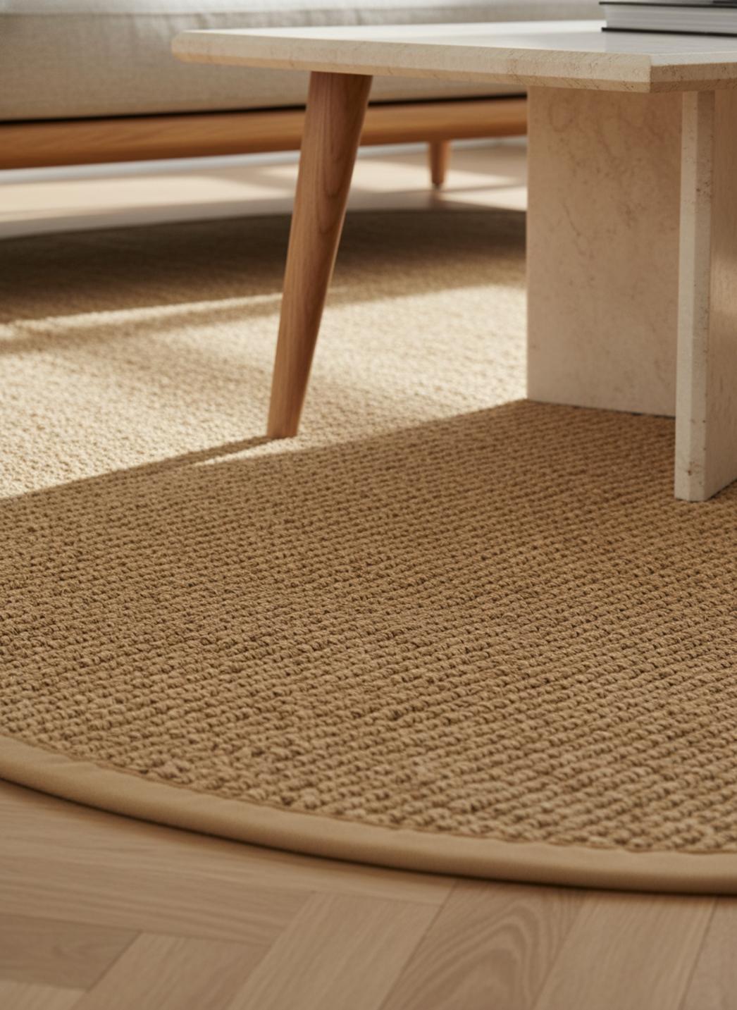 Tapis scandinave uni tressé rond beige en sisal 150 cm de diamètre