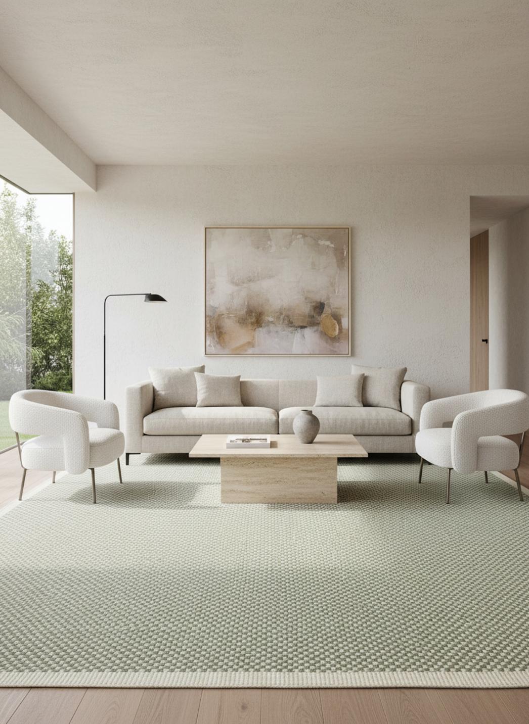 Tapis scandinave uni vert en laine 250x350 cm