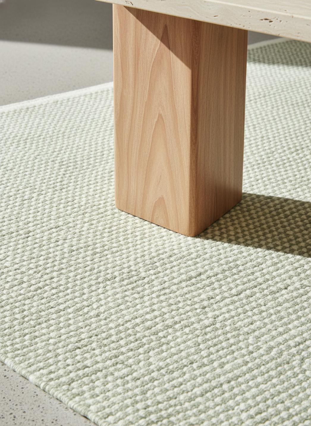 La matière parle au toucher avec une présence chaleureuse et rassurante, évoquant la tradition des intérieurs lumineux du Nord. La densité et la caresse de la laine confèrent au tapis une profondeur feutrée, tout en restant légère et aérée dans l'ensemble de la pièce.