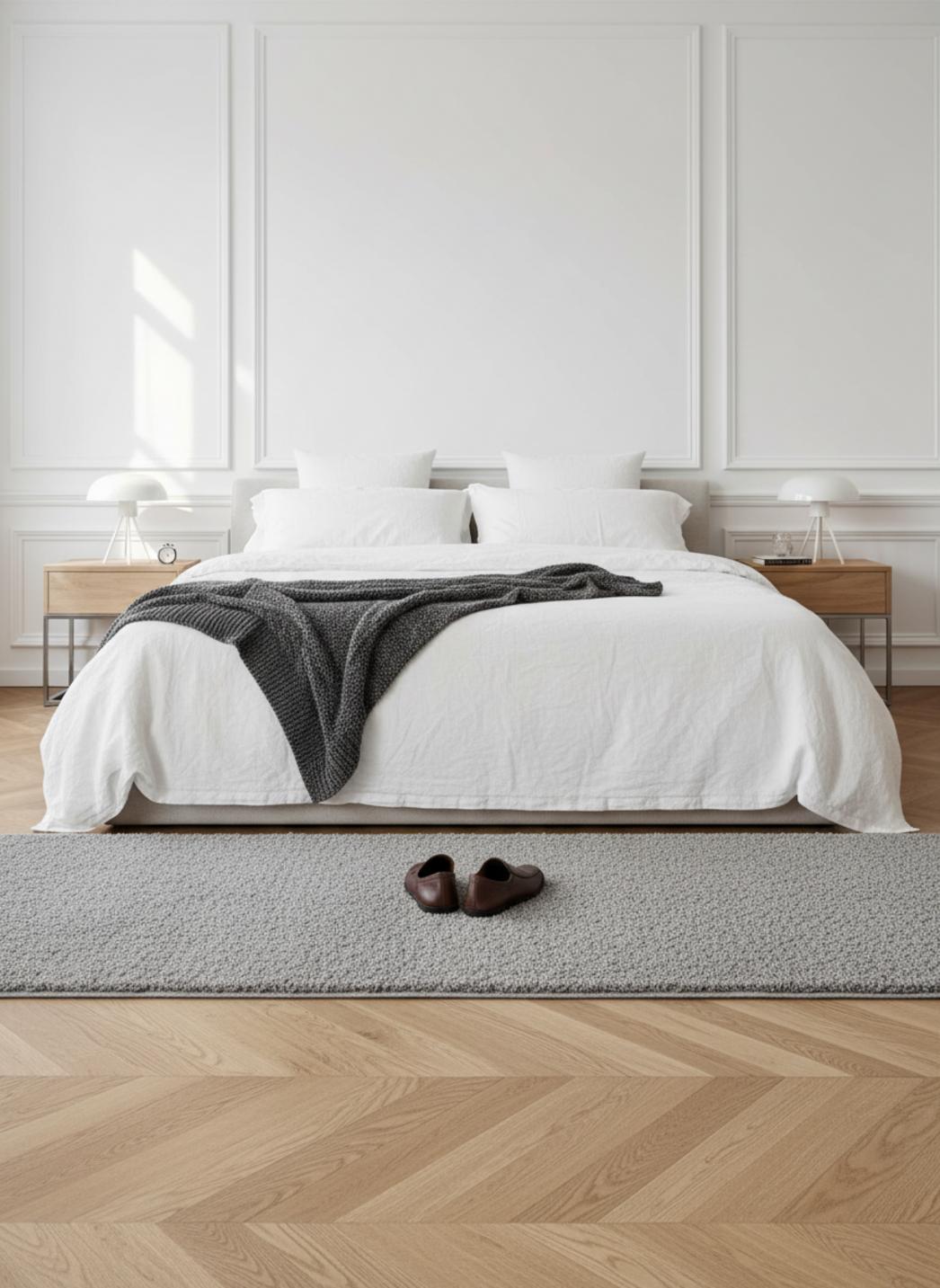 Chaque fibre joue le rôle d’une barrière chaleureuse : la chaleur sous les pieds est immédiate et prolongée, l’effet cocon se prolonge dès les premiers pas. L’entretien reste simple et respectueux de la matière, un entretien régulier avec une aspiration douce et quelques gestes attentifs suffisent à préserver la densité et la souplesse du velours de poils.