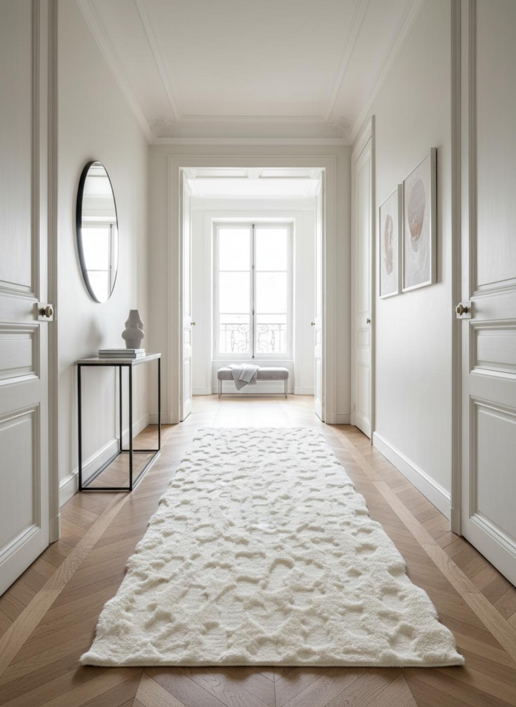 Conçu pour structurer et adoucir, ce tapis pensé pour le couloir se déploie sur 60x200 cm avec une élégance qui équilibre longueur et proportion, atténuant les lignes étroites pour instaurer un chemin plus accueillant entre les pièces.