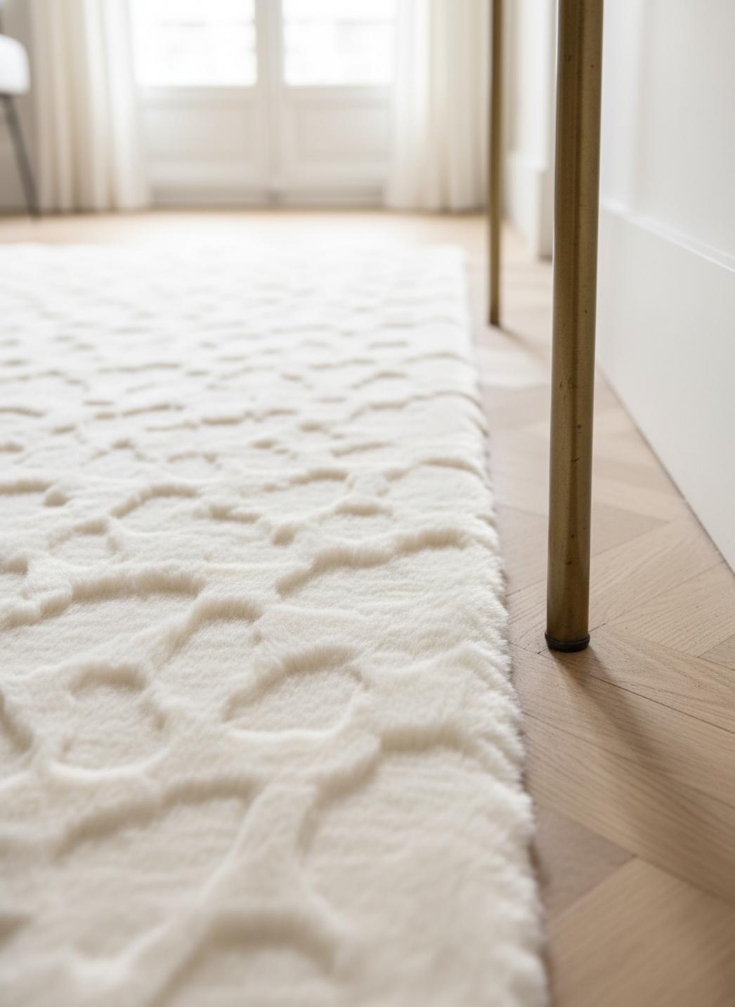 Chaque geste devient plus lent, comme ralenti par l'épaisseur moelleuse; le relief des poils longs crée un effet enveloppant qui réchauffe instantanément la pièce, transforme le silence en confort grâce à son pouvoir d'absorption sonore et affirme une présence visuelle à la fois contemporaine et chaleureuse.
